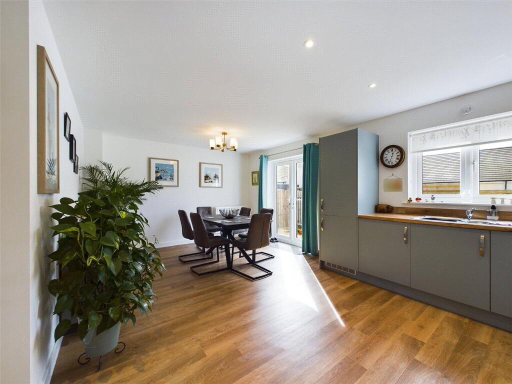 Upon entering the property, you are greeted by a welcoming entrance hall that leads to a generous living room, perfect for relaxing or entertaining. The heart of the home is the stylish open-plan kitchen and dining area, ideal for family meals and social gatherings. A convenient ground floor WC completes the layout.