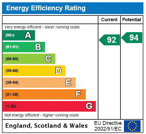 - EPC rating A (92) with the potential to be A (94). Valid until July 2032.