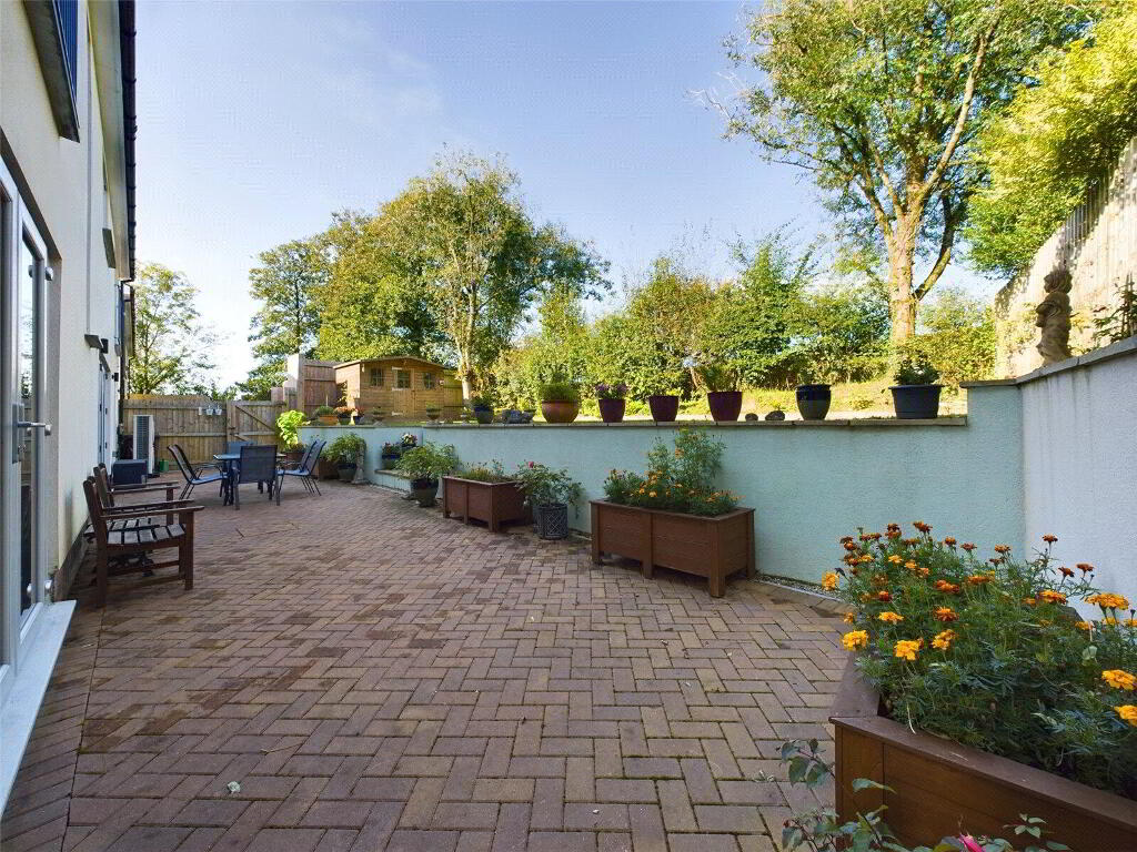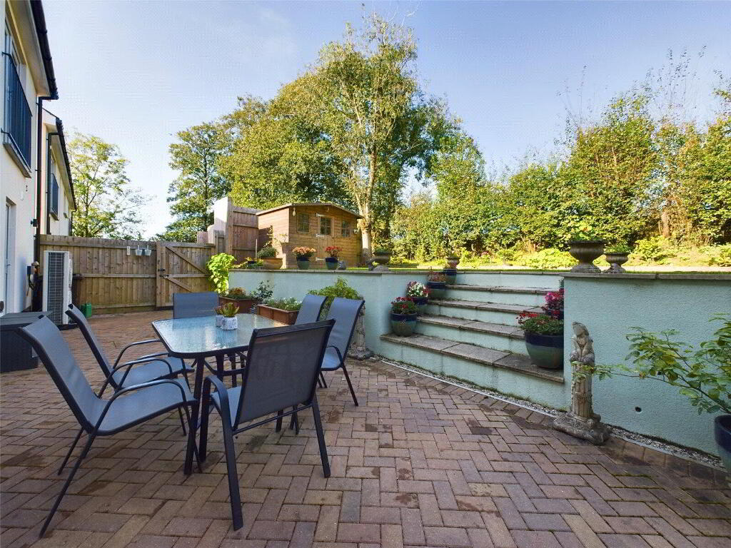 - The property is approached via a shared entrance which spits into two separate private drives. The paved red brick drive provides extensive off road parking. Pedestrian access to the rear gardens which are well landscaped with a brick paved patio area, providing the ideal spot for alfresco dining. Steps lead up to a level lawn, bordered by attractive planting and a mature hedge. Space for timber garden shed. Outside plug sockets.