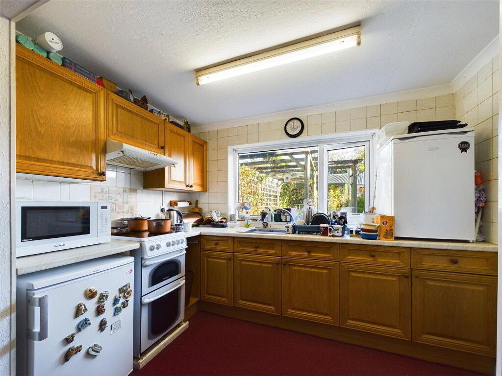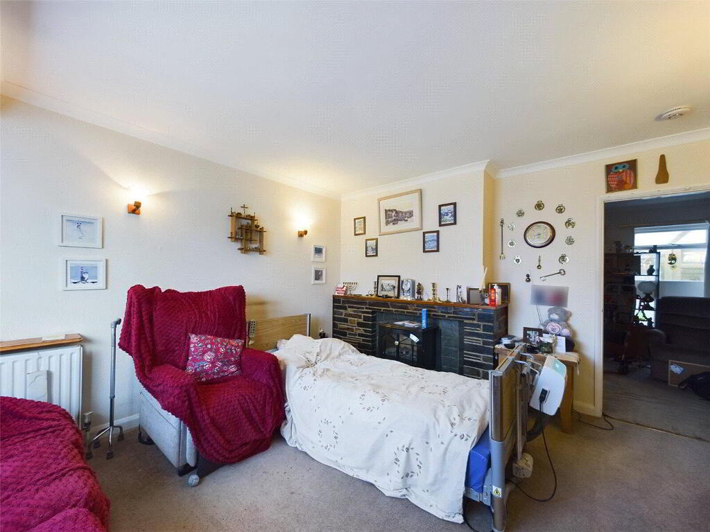 Adjoining the living room is a versatile dining area. Previously a kitchen/diner, this space has been extended to provide ample room for a large dining table, creating an ideal setting for family meals or social gatherings. The extended kitchen is well-equipped with plenty of worktop space for culinary activities. A rear porch adjacent to the kitchen provides convenient access to the integral garage and offers future potential for further open-plan living, subject to the necessary permissions.