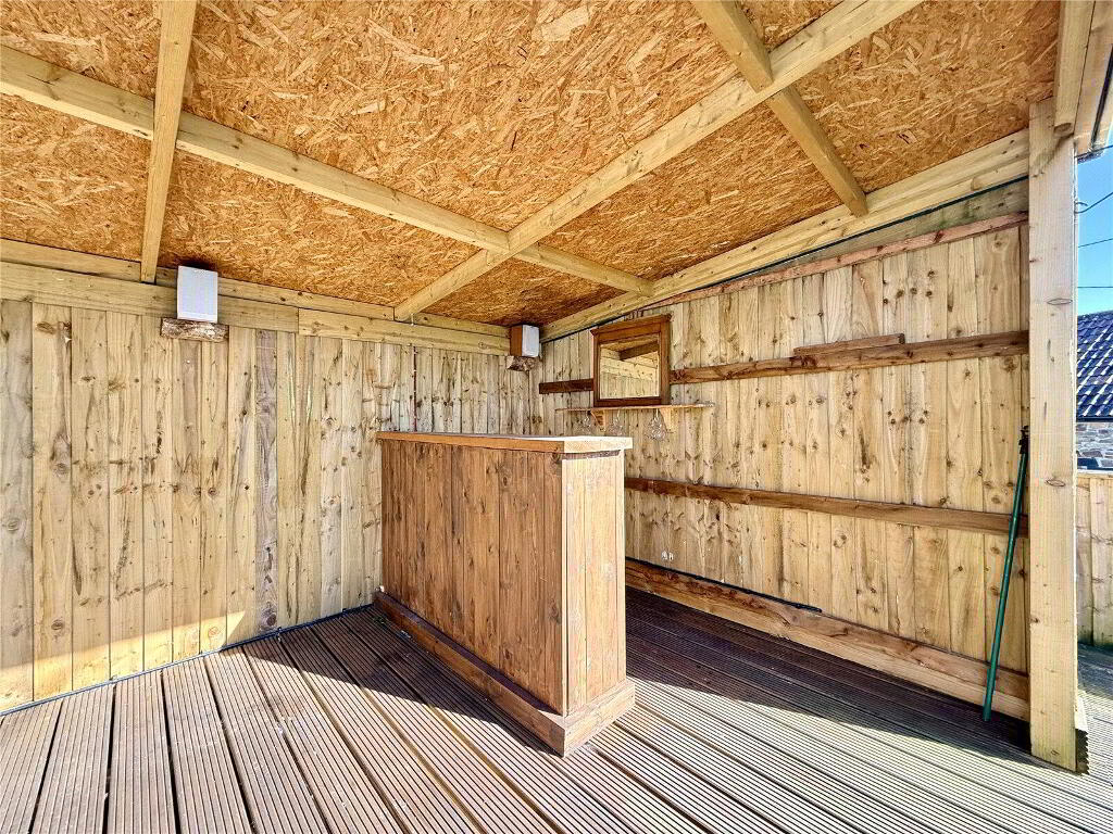 Step outside to discover a large, meticulously maintained garden that offers plenty of room for al fresco dining, hosting summer gatherings, or simply soaking in the surroundings. A covered decked seating area provides a sheltered spot to relax year-round, while the lush lawn and additional decked area offer even more space to enjoy the outdoors.