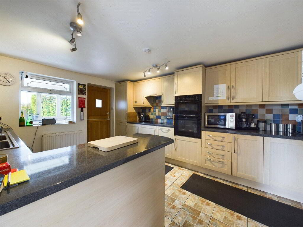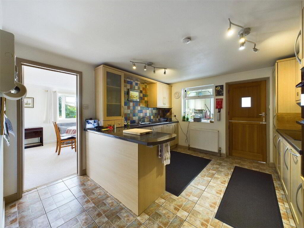 Base and wall mounted units with work surfaces over incorporating composite 1 1/2 sink drainer unit with mixer tap. Space and plumbing for washing machine. Space for chest freezer. Double glazed UPVC windows overlooking the landscaped gardens and door to outside.