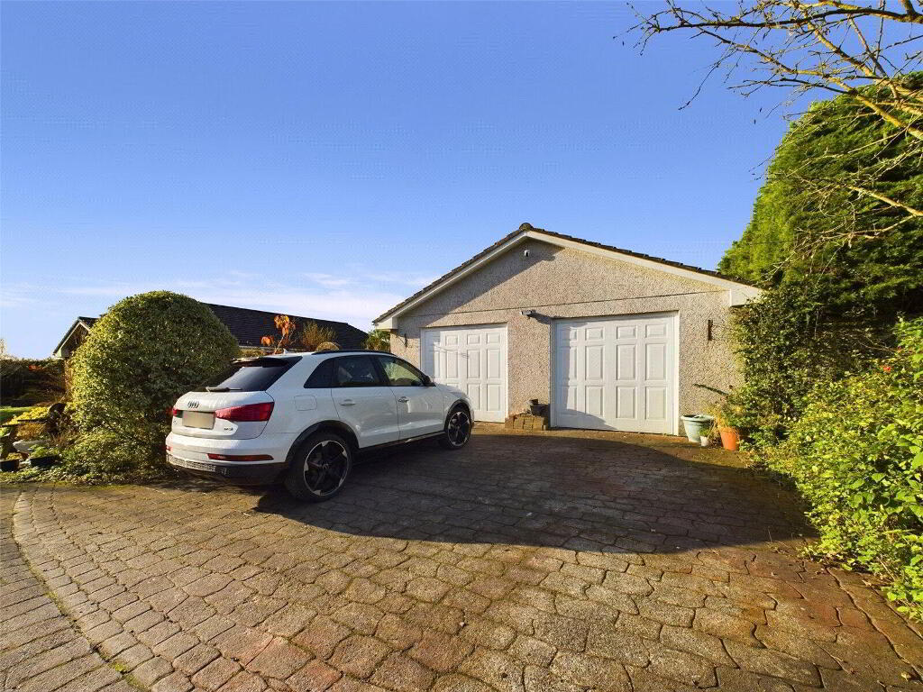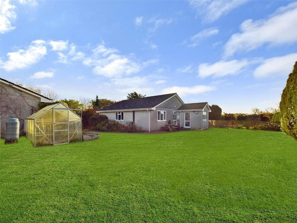 Welcome to this delightful detached bungalow, set on a generous 0.5 acre plot tucked away in the North Cornish village of Grimscott. This spacious property offers a blend of comfortable living boasting three well-proportioned bedrooms, including a master bedroom with an en-suite. The light-filled interiors offer a warm and welcoming atmosphere, while the generous layout provides ample space for family living or entertaining guests. Outside, the property features a large double garage with a paved driveway, providing plenty of parking and storage options. The beautifully landscaped gardens offer a peaceful setting, with mature shrubs and lush greenery adding to the home's serene appeal. Whether you're enjoying a morning coffee on the patio or strolling through the gardens, this property invites you to experience the best of country living.