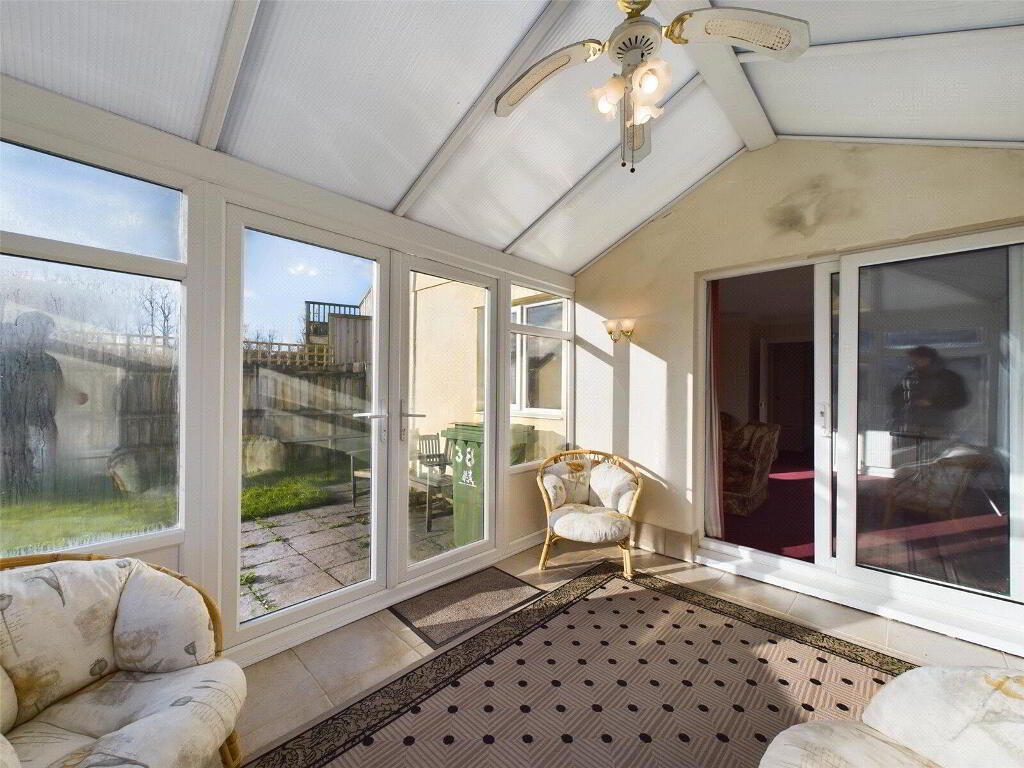 To the front of the property is a driveway providing ample off road parking, giving access to the integral garage. Steps lead down to the front door with access to a storage area located under the drive. A pedestrian access to the side leads to the enclosed south facing gardens which is principally laid to lawn with a paved area adjoining the property. Fantasic views over the surrounding countryside to the rear.