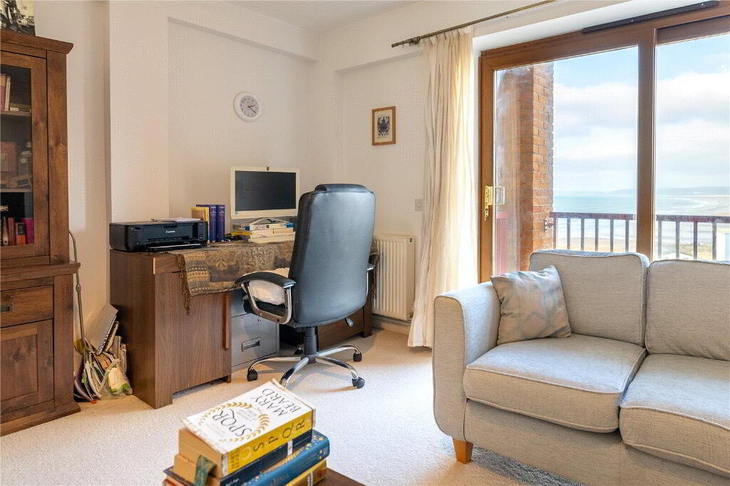 The apartment enjoys a sunny south-facing aspect, with sweeping views from the spacious living areas - perfect for watching stunning sunsets. This well-appointed home features a bright and airy Reception Room, a fully equipped Kitchen, 2 comfortable Bedrooms, an En-suite Shower Room and a Bathroom. With only 2 apartments per floor, residents enjoy both privacy and a quiet coastal retreat.