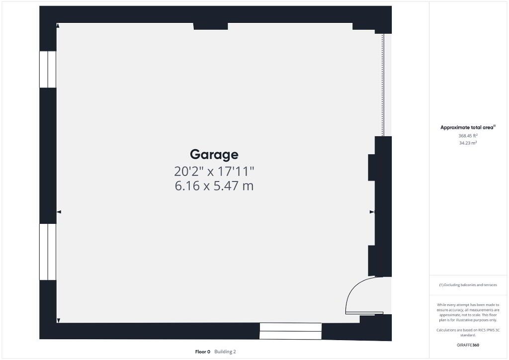 Up and over garage door with power and light connected. Windows to rear and side elevation.