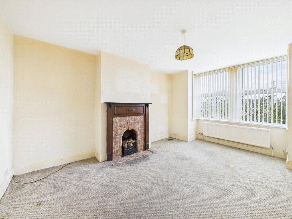 Light and airy room with feature fireplace with wooden mantel surround. Large window to front elevation.