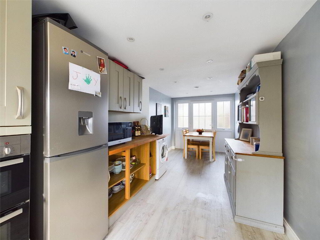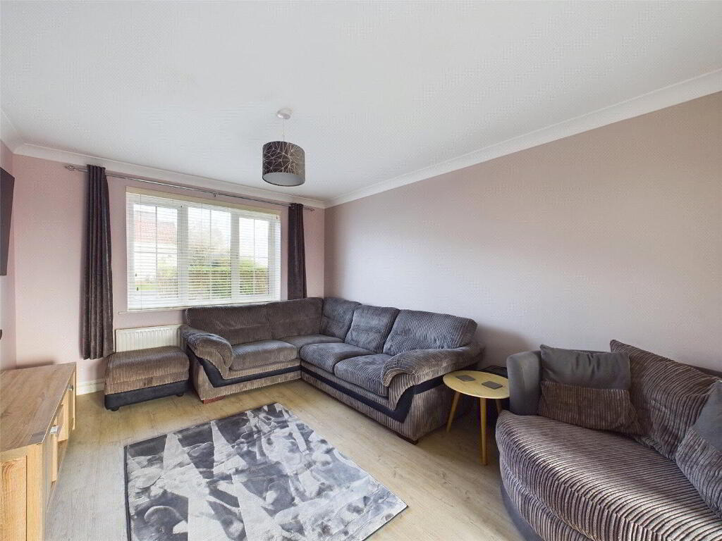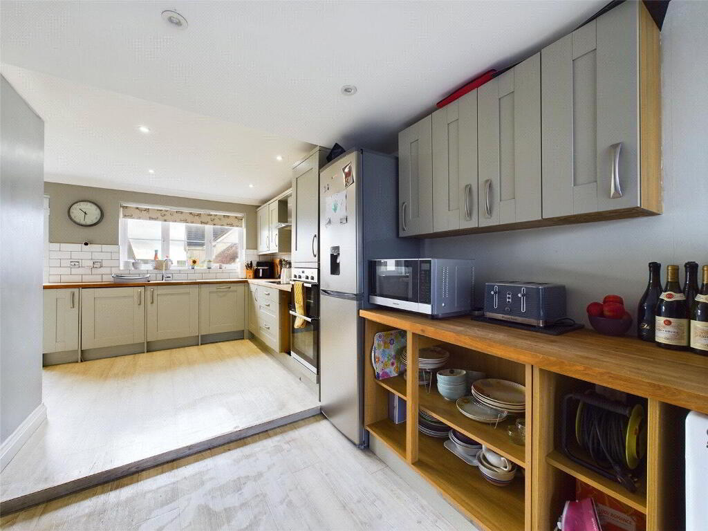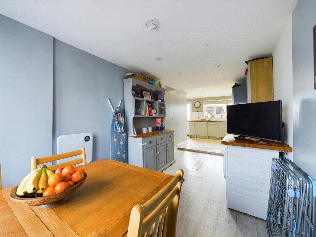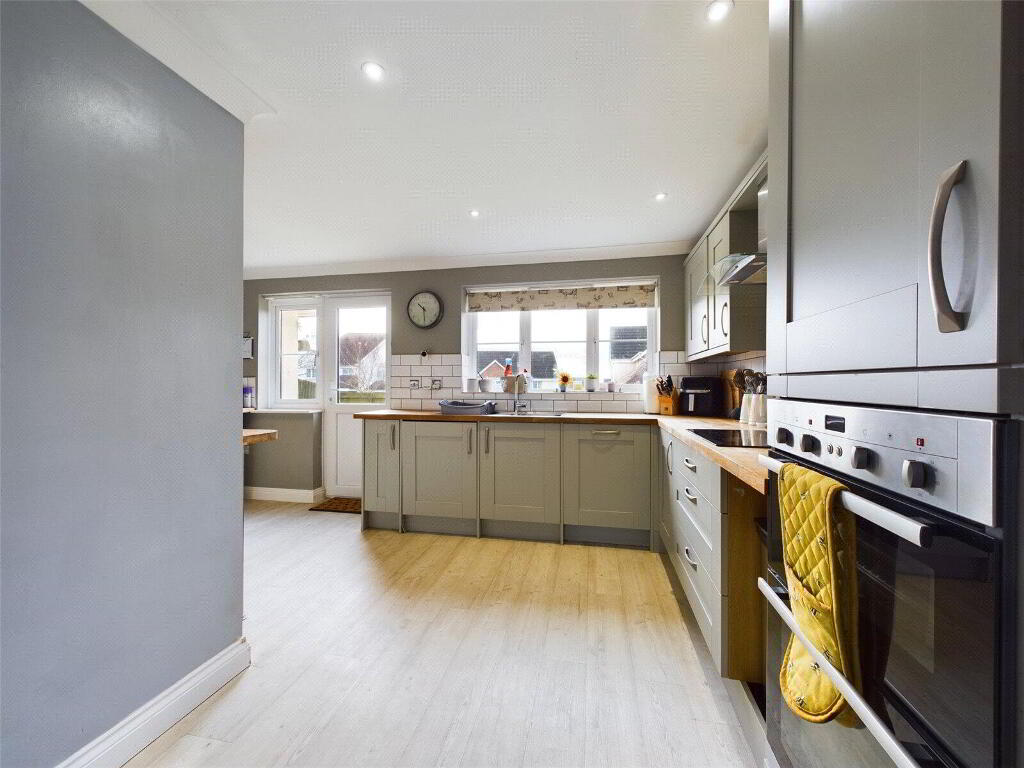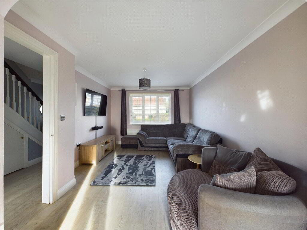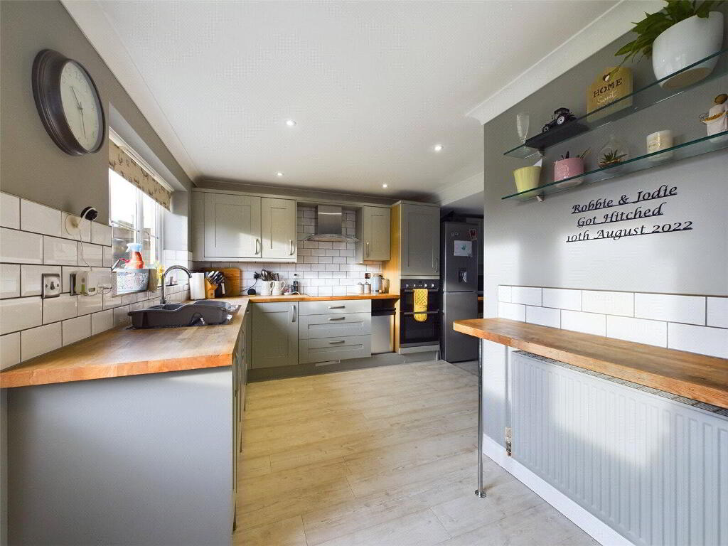 A superbly presented 'L' shaped room with a fitted kitchen comprising a matching range of base and wall mounted units with solid wood work surfaces over incorporating a 1 1/2 stainless steel sink drainer unit with mixer taps. Built in double oven, countertop 4 ring ceramic hob with extractor system over. Integrated dishwasher. Plumbing and recess for washing machine and tall fridge/ freezer. Ample space for a dining room table and chairs. - Living Room