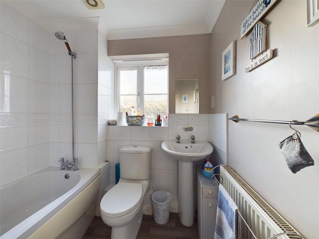 A fitted suite comprises an enclosed panelled bath with shower attachment over the taps, close coupled WC and wash hand basin. WIndow to rear elevation. - Outside