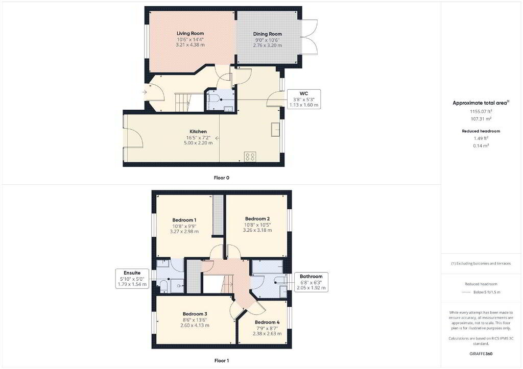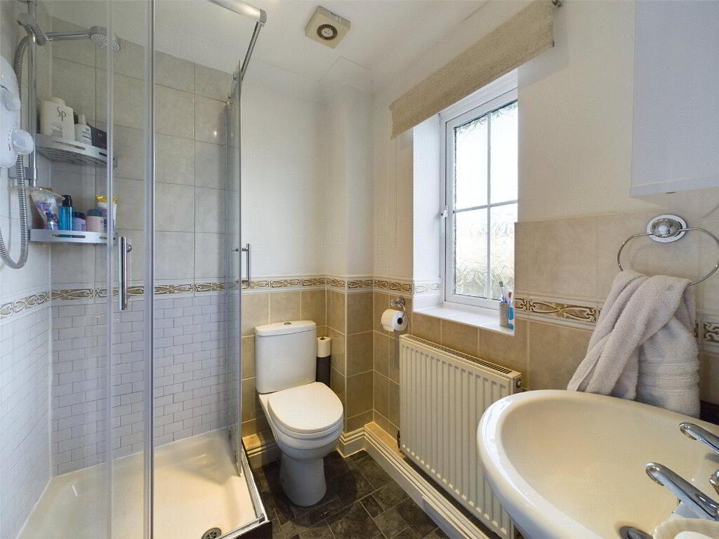A fitted suite comprises an enclosed shower cubicle with a power shower connected, close coupled WC and wash hand basin. Window to front elevation. - Bedroom 2