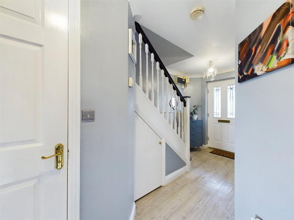 - To the front of the house, a tarmacadam drive and adjoining area of ornamental shingle provide useful off road parking for 2 cars. The enclosed rear garden has been landscaped for ease of maintenance being principally laid to lawn, with a full width patio area, perfect for "Al Fresco" dining and entertaining. Timber garden shed. 2 play parks are located within the cul-de-sac.