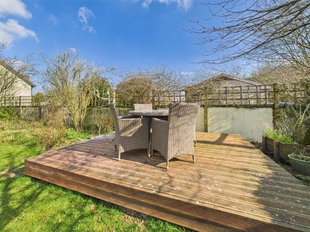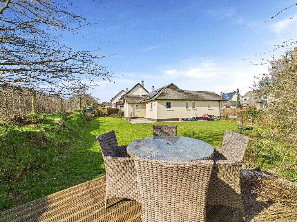 The property has a generous size frontage providing ample off road parking with a tarmac and gravel laid areas. Pedestrian access round the side of the property gives access to the rear gardens, which are a great size being a corner plot, principally laid to lawn with a mix of natural Devon Bank boundaries and walls. Raised timber decking provides the ideal spot for alfresco dining whilst enjoying a lovely view to the rear.