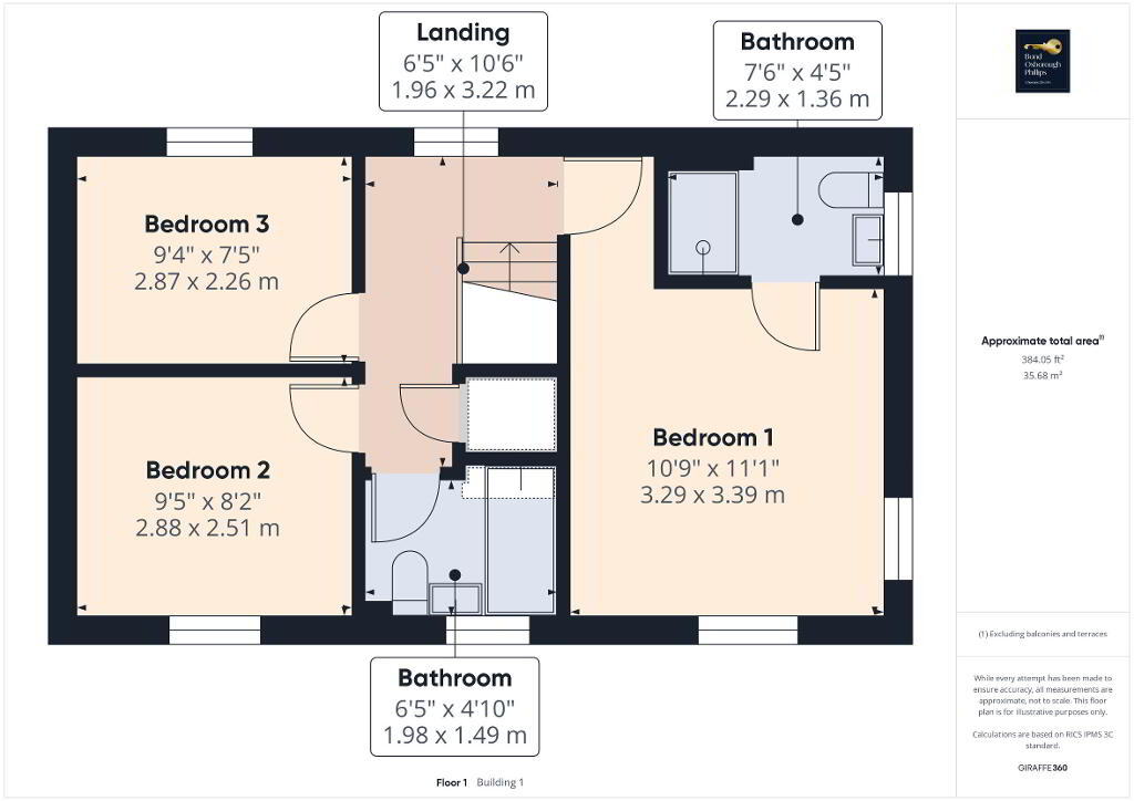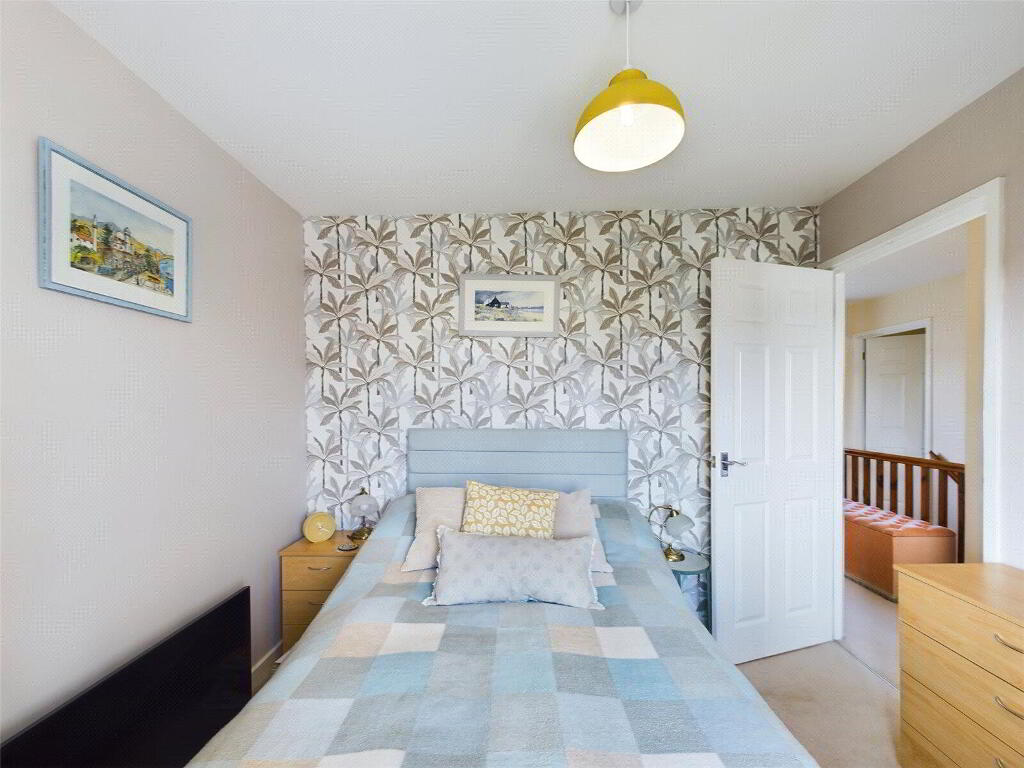 Upstairs, the property features three well-proportioned bedrooms. The principal bedroom is a generously sized double, offering plenty of space for furnishings. The second bedroom is also a good-sized double, while the third bedroom makes an ideal child’s room, guest bedroom, or home office. The family bathroom is modern and tastefully finished, equipped with a bath, shower attachment, WC, and wash basin.