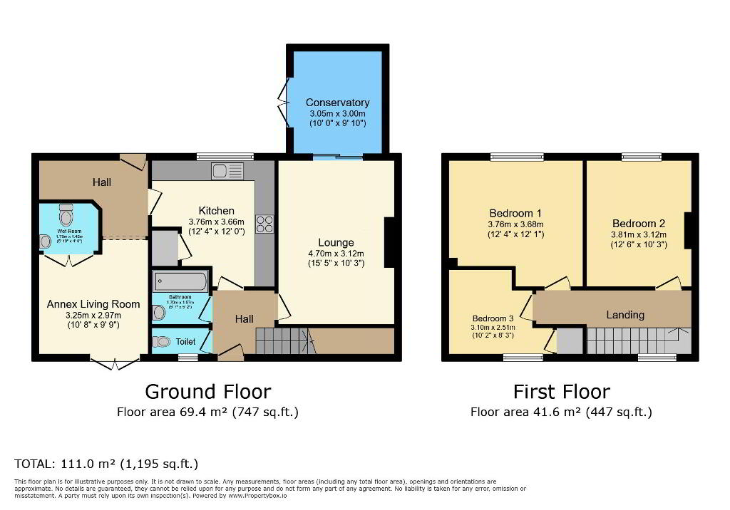 The main house features a welcoming and airy layout. From the Entrance Hallway, you’ll find a bright and inviting Lounge with plenty of space for relaxing or entertaining, which flows seamlessly into the Conservatory, overlooking the garden and providing the perfect spot for dining, relaxing, or enjoying the garden views year-round. A large Kitchen / Dining Room, offers ample storage and workspace. The Ground Floor also benefits from a well-appointed Bathroom, conveniently located for easy access.