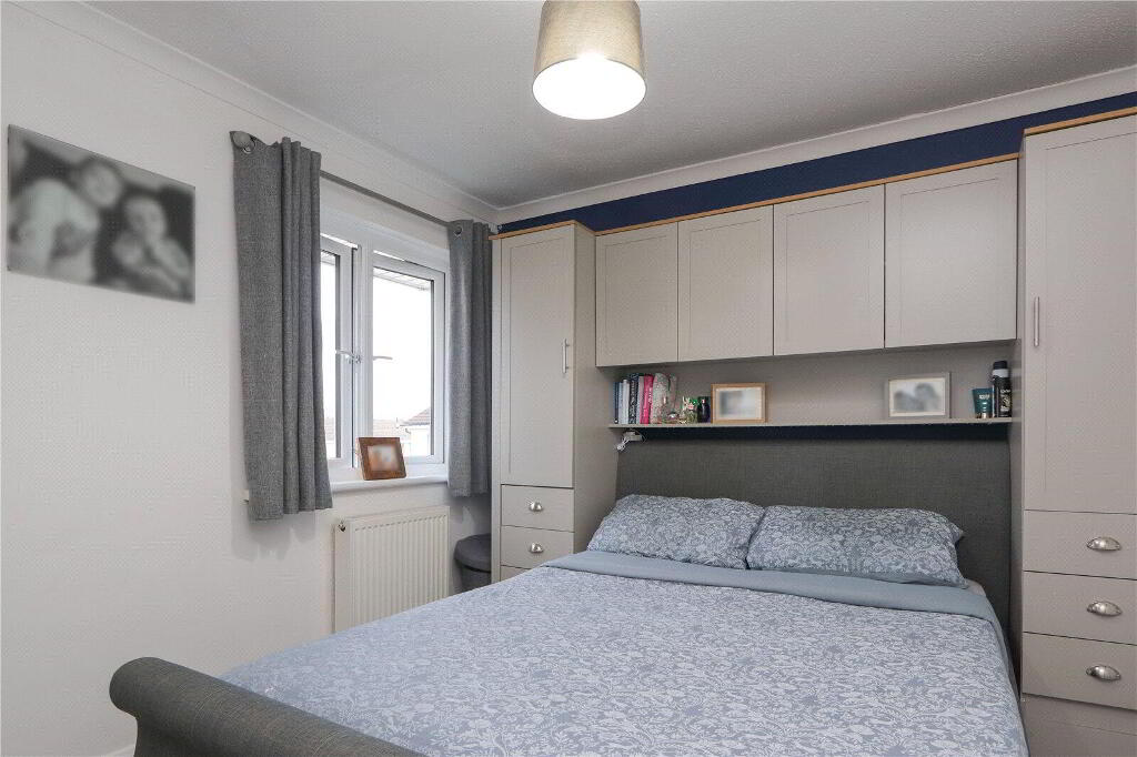 2 large UPVC double glazed windows to property front. Large built-in storage cupboard with radiator and slatted shelving. Fitted carpet, radiator.