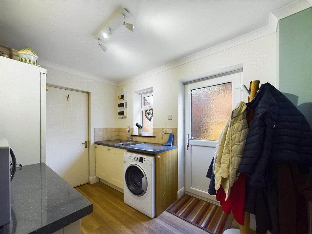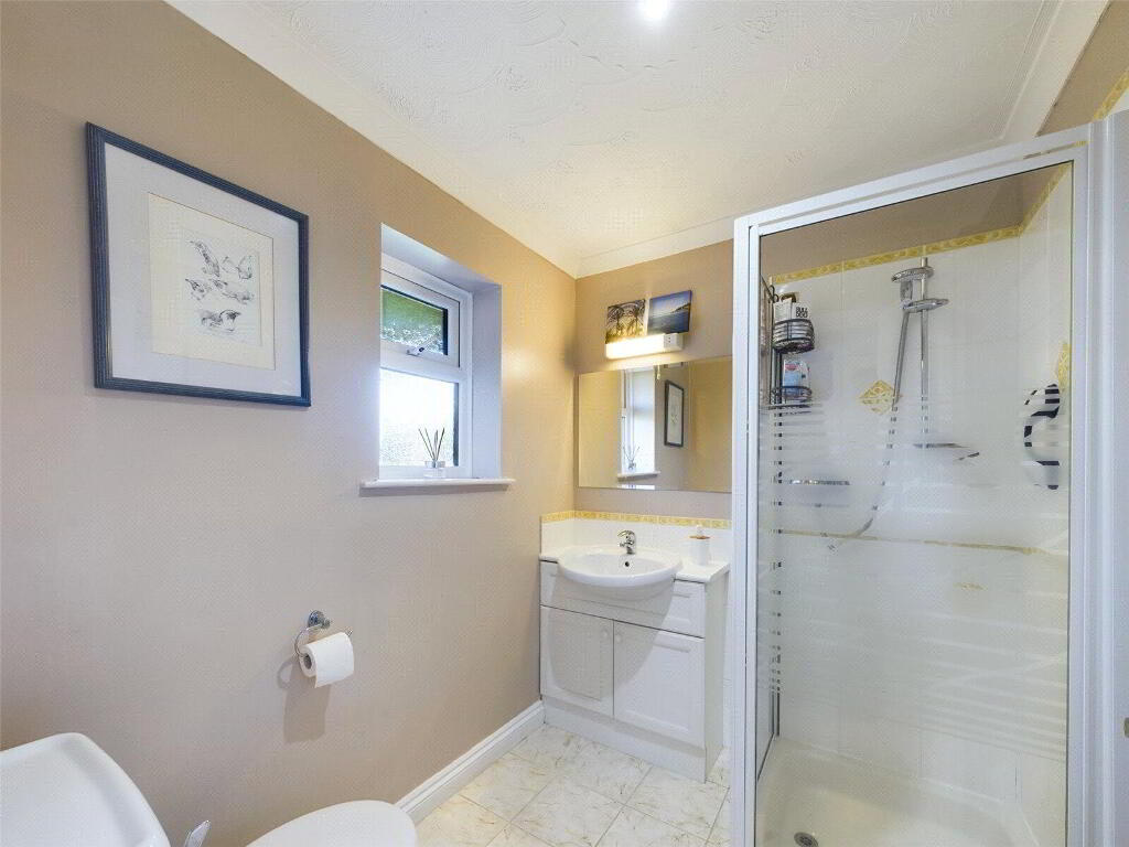 On the ground floor, you'll also find a generously sized separate living room, offering ample space for large furniture and a comfortable area to unwind in the evenings. A conveniently located bathroom, equipped with a W.C., shower, and basin, serves the ground floor, while a utility room offers a practical space for household essentials. Access to the large double garage is also available from the utility room. This garage is a standout feature, complete with an electric roller door, loft storage, and plenty of room for a vehicle — an excellent bonus for any homeowner.