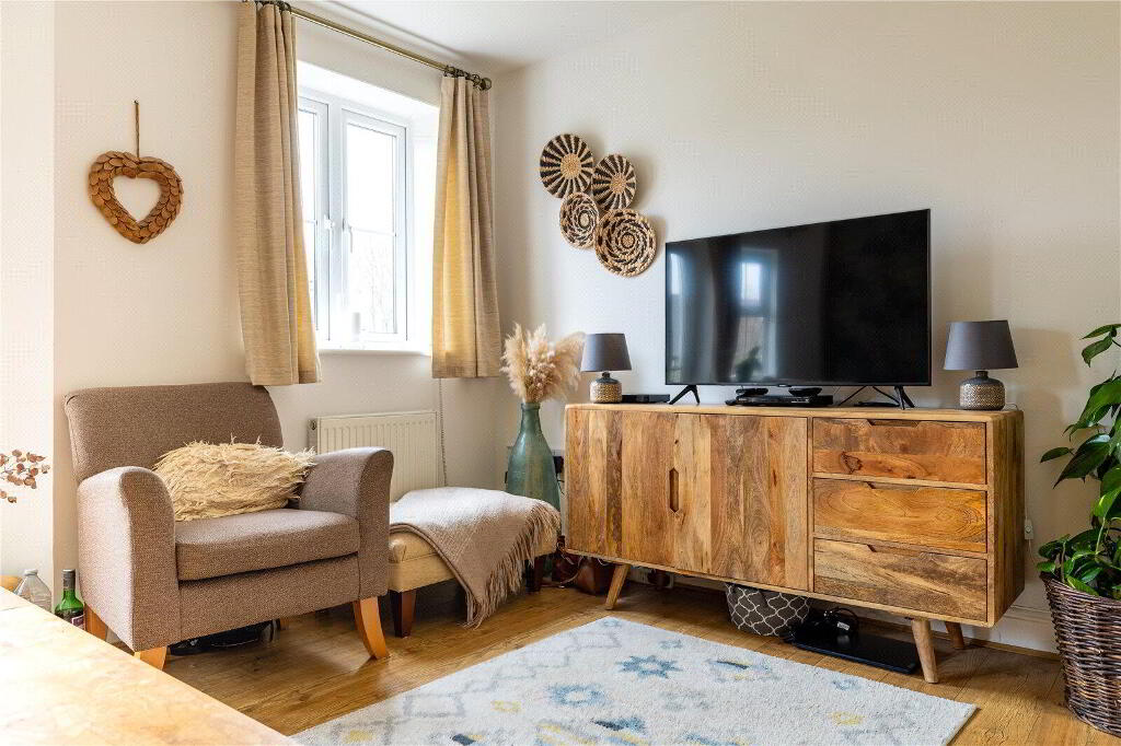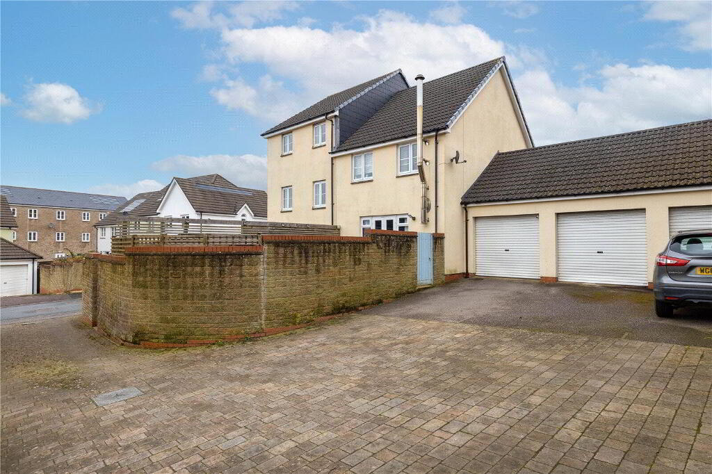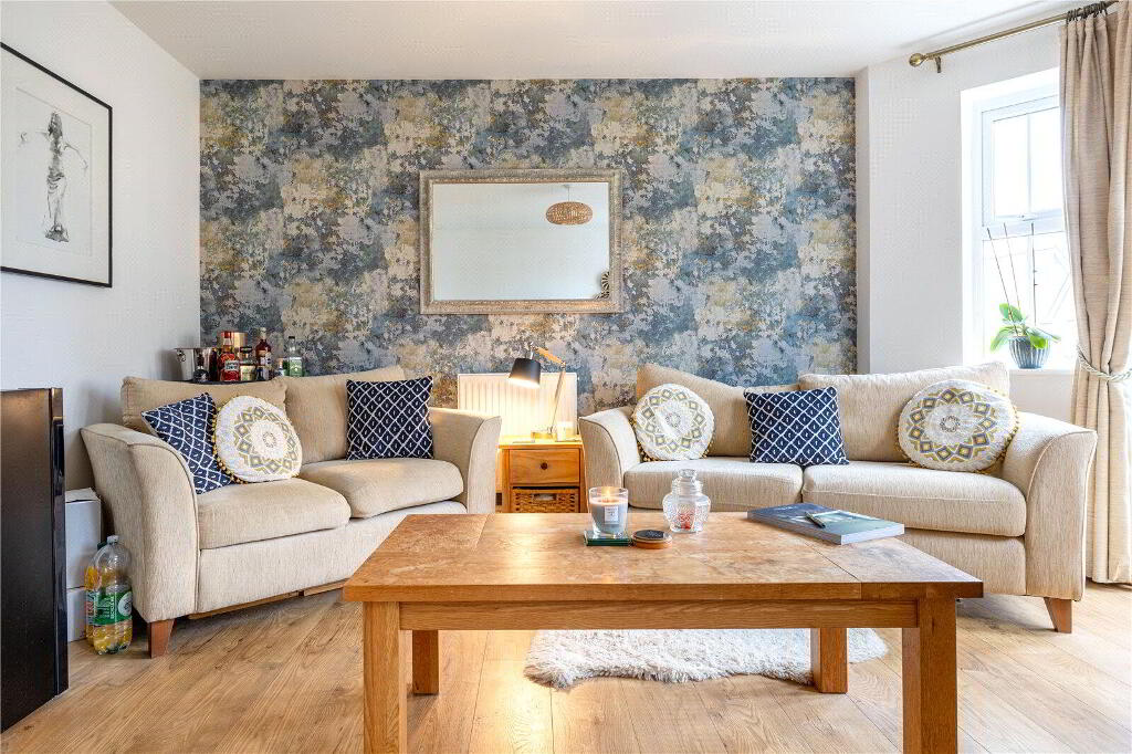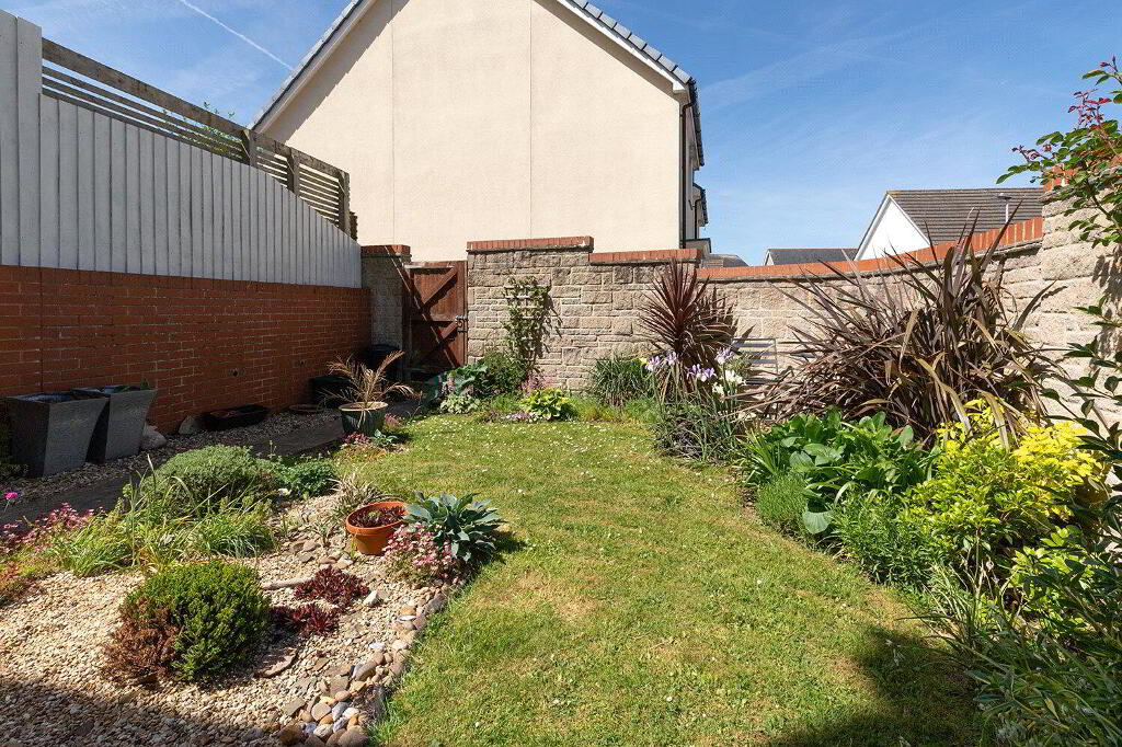 Outside, the private rear garden extends approximately 26' x 15' (7.92m x 4.57m) and is enclosed by timber fencing and stone blockwork, providing a safe and secure space for children or pets. A patio area, directly accessible from the Kitchen, offers the perfect spot for summer barbecues and outdoor dining, while the remaining garden is laid to lawn. A rear gate provides access to a Single En-bloc Garage, with an additional private parking space for 1 vehicle.