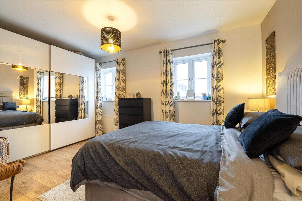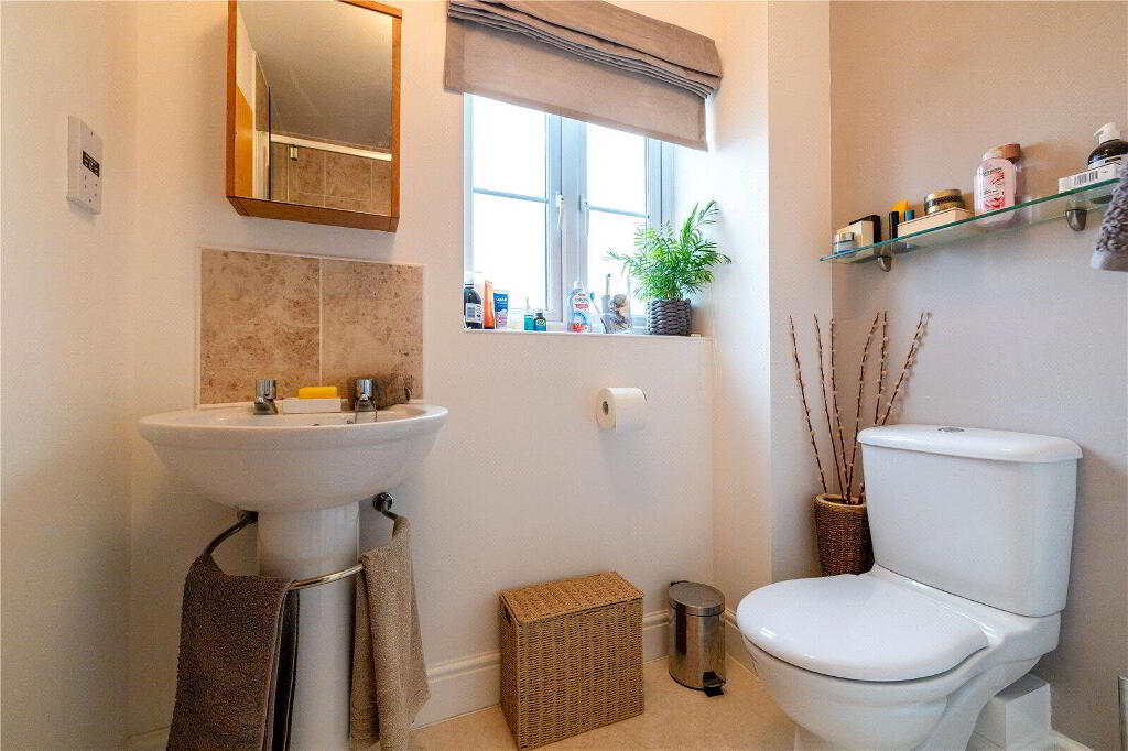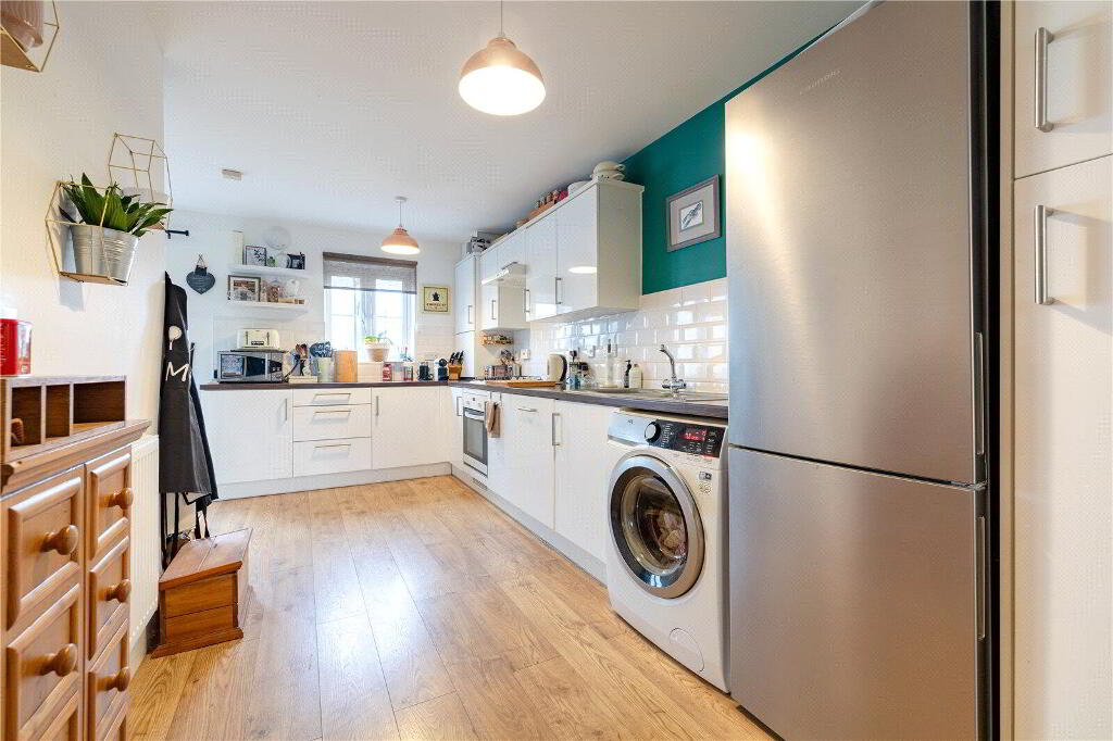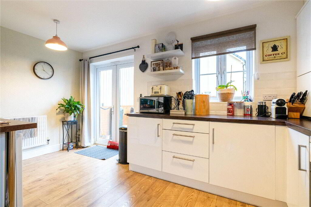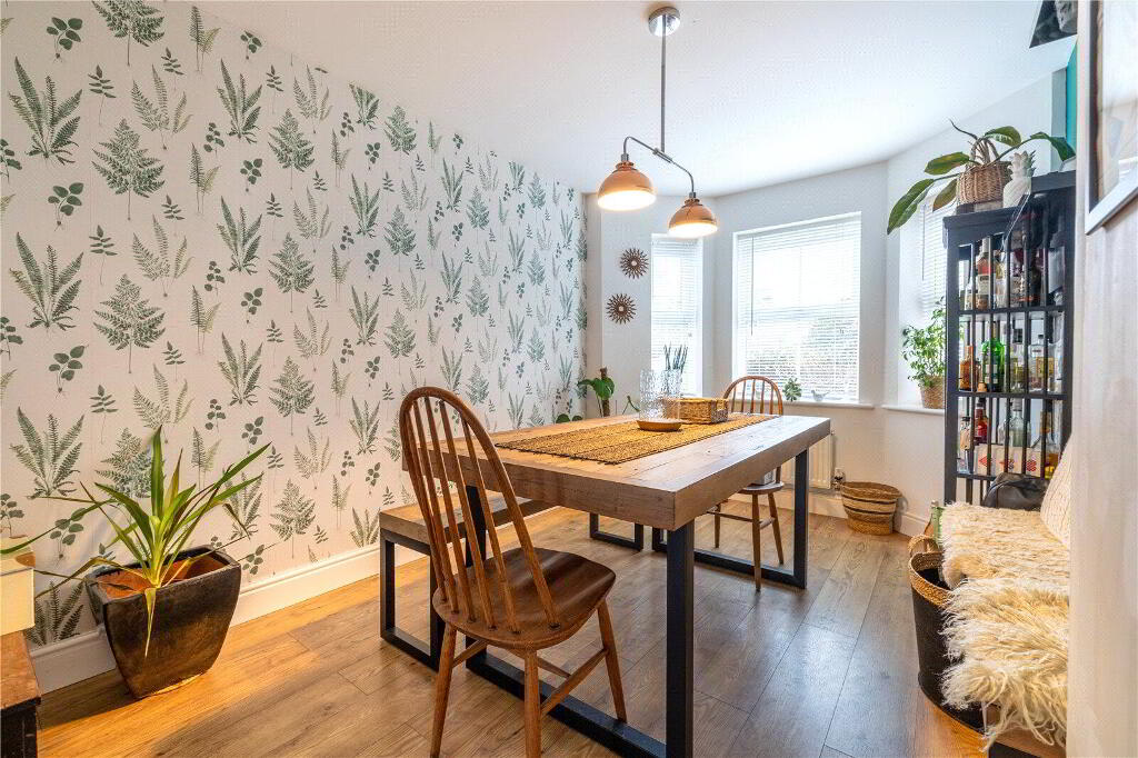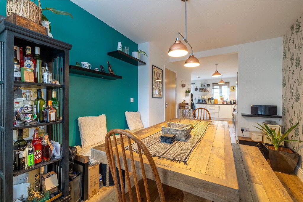 Spread over 3 floors, the property is thoughtfully designed to meet the needs of modern lifestyles and enjoys an open aspect. On the Ground Floor, a welcoming Entrance Hall with stylish oak laminate flooring leads to a Cloakroom. At the rear, the spacious, open-plan Kitchen / Dining Room serves as the heart of the home. Featuring sleek base and eye-level units, a 4-ring gas hob with extractor hood, an integrated dishwasher, and space for a fridge / freezer and washing machine, this space is both functional and stylish. Double doors open directly onto the private rear garden, making it perfect for entertaining or relaxed family meals. At the front of the property, a versatile fifth Bedroom is currently used as a formal Dining Room but could easily be converted back into a Bedroom, if required.