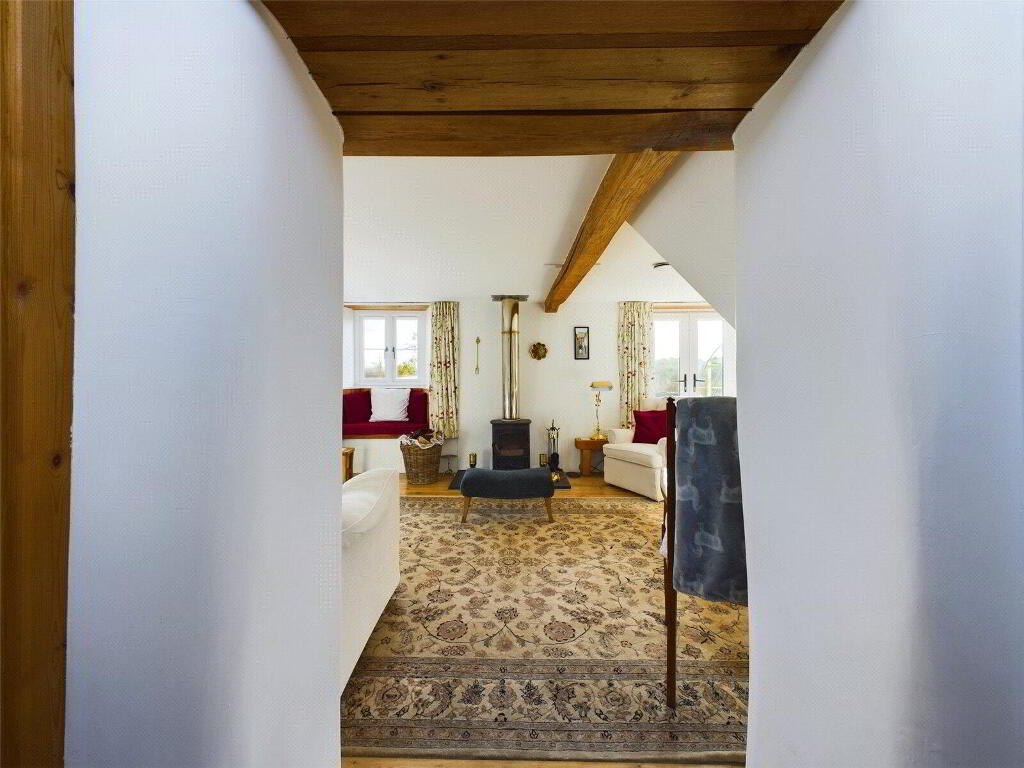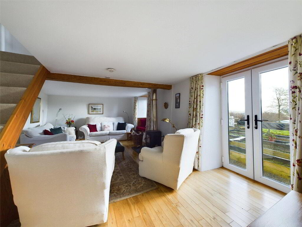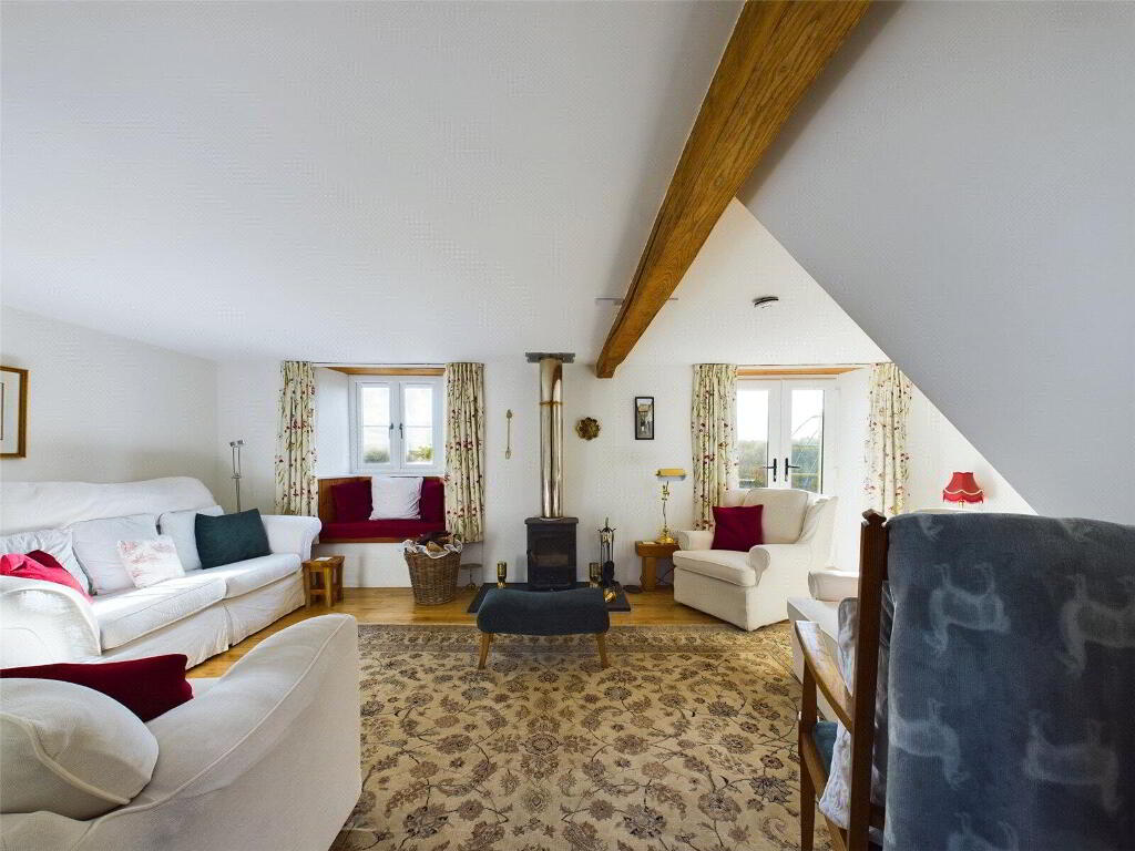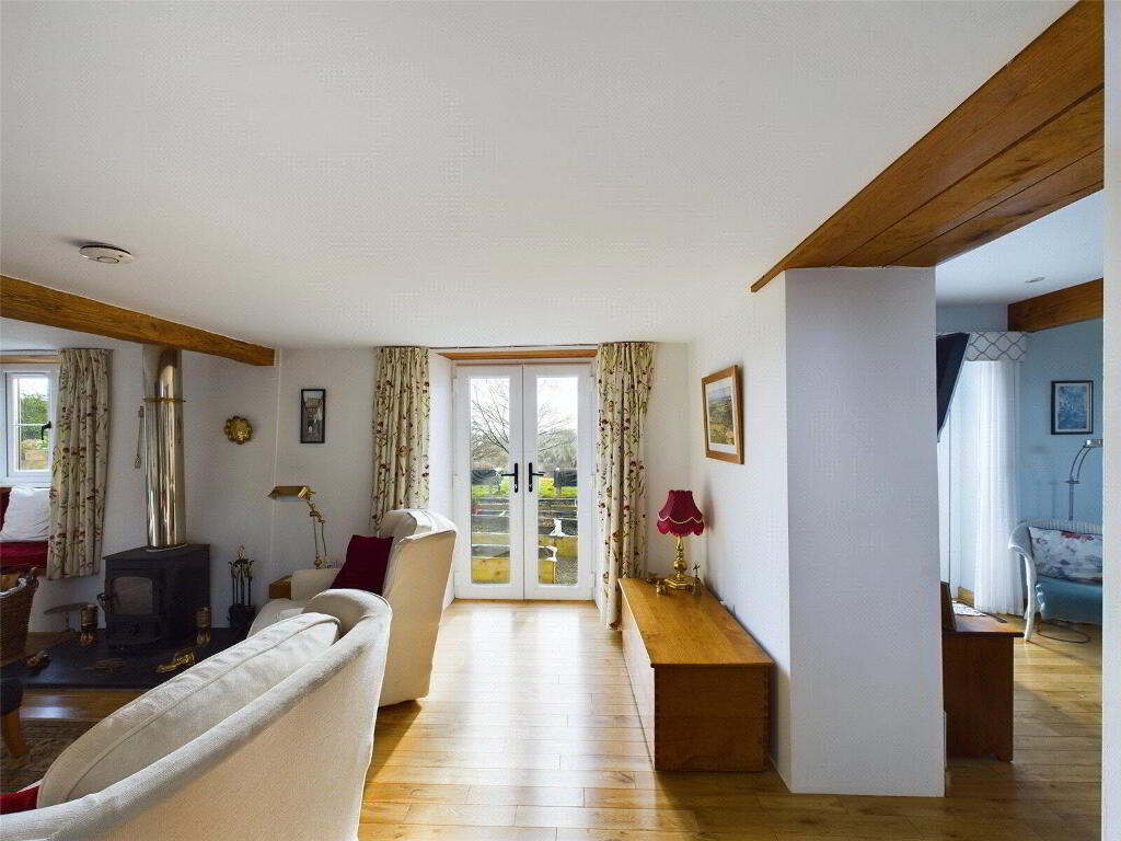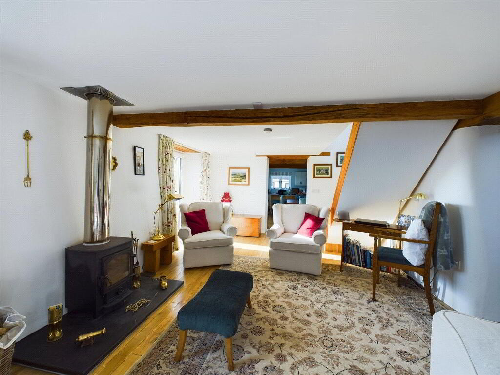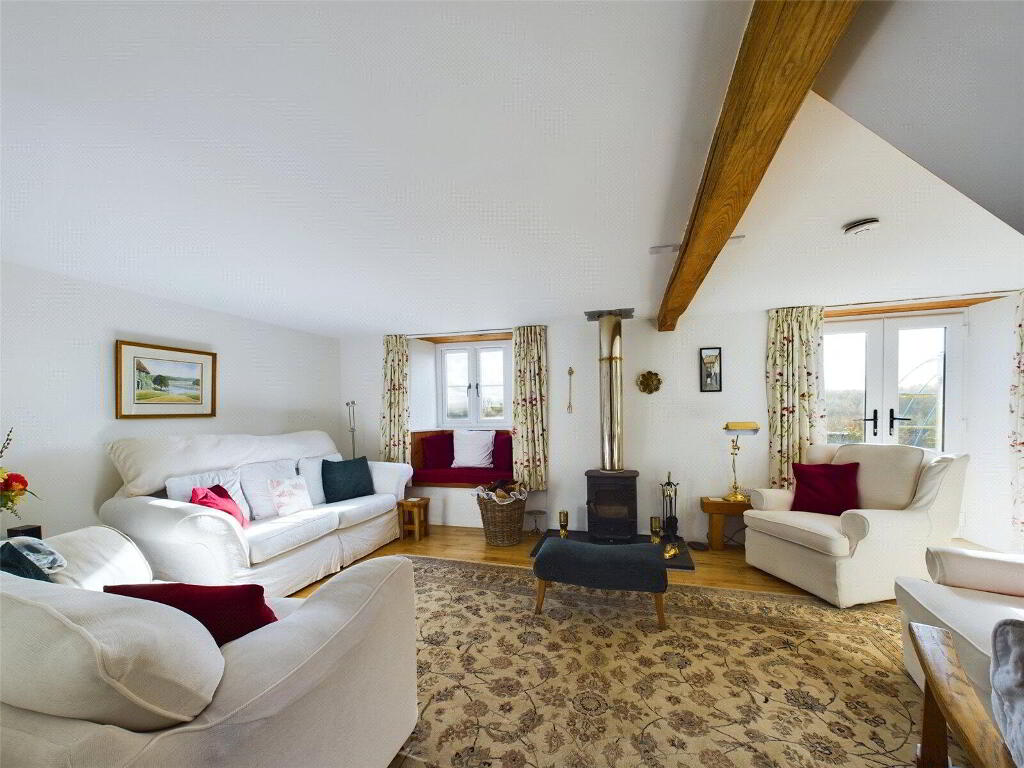 A spacious, light and airy room with window and French glazed double doors to rear elevation enjoying fantastic views of Dartmoor. A feature wood burning stove sits on a slate hearth. Window seat and exposed timbers. - Boot Room