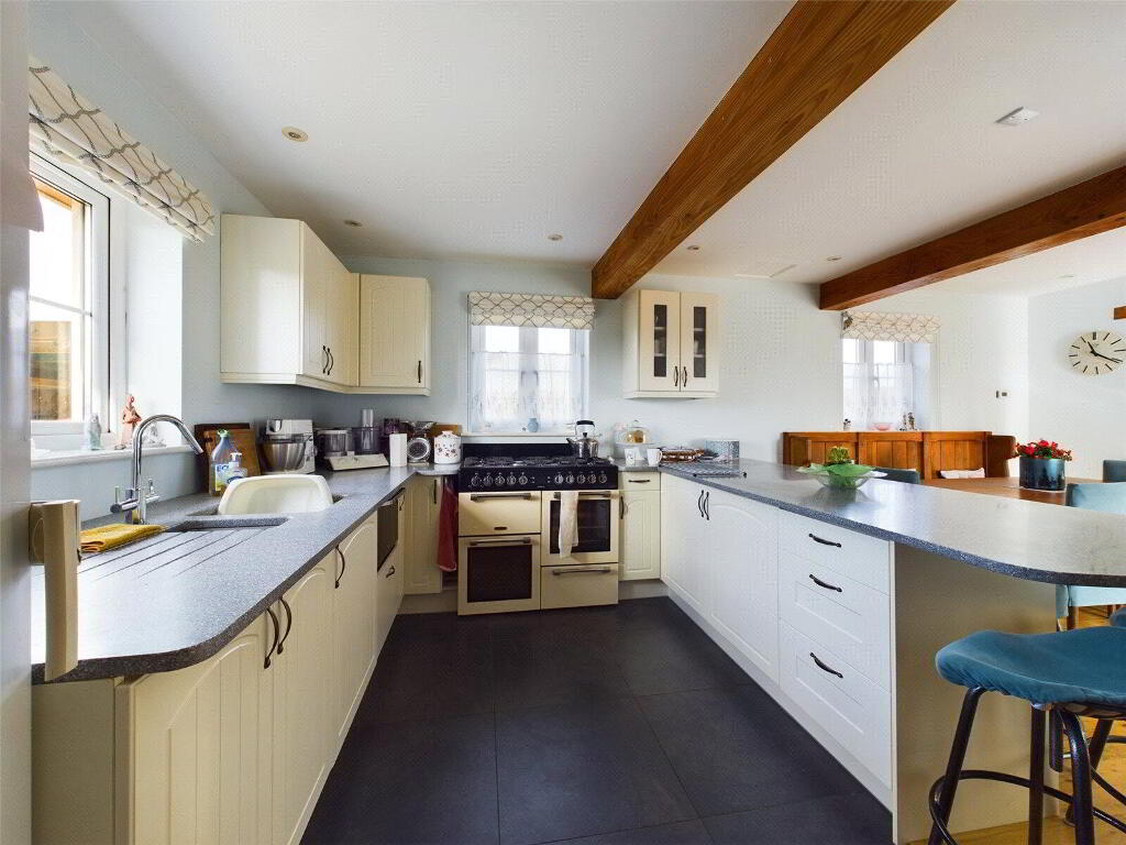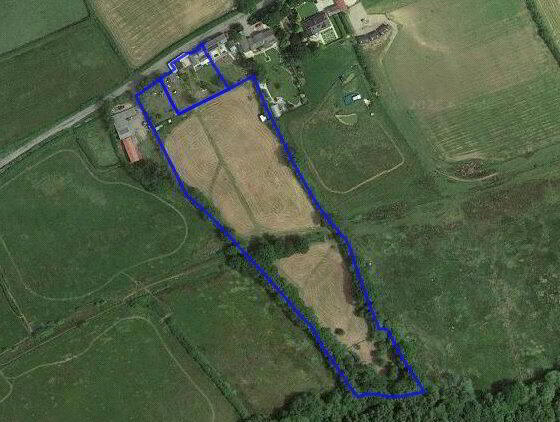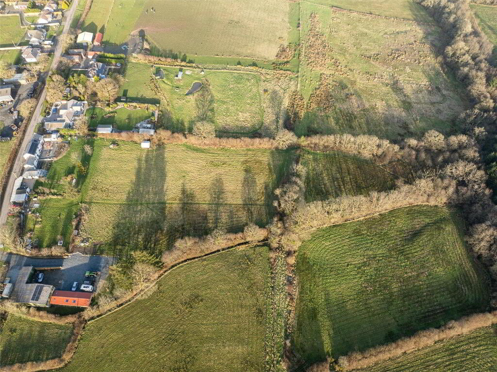 - The land adjoins the rear gardens and totals approximately 4.75 acres. The land is gently sloping to the south, comprising two paddocks with a small area of copse that borders the picturesque stream.