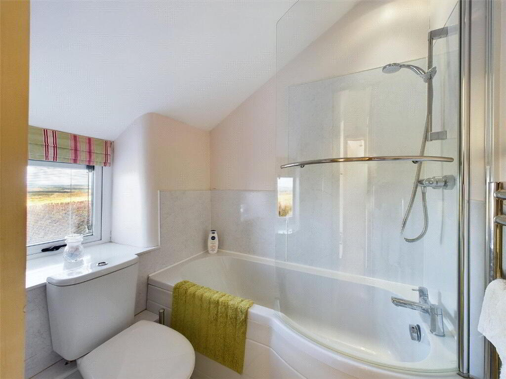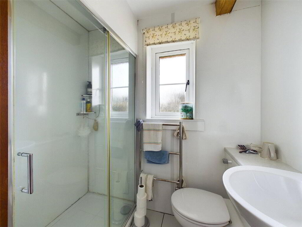 A fitted suite comprises an enclosed shower cubicle with a mains fed shower connected. A vanity unit houses a concealed cistern WC and inset wash hand basin. Window to side elevation. - First floor
