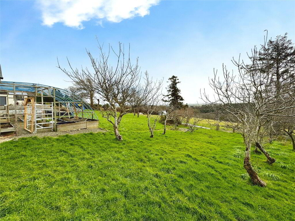 - At the front of the property is a gravel laid area giving access to the front door, a pedestrian gate gives access to the rear gardens. To the right is a driveway with twin gates opening up into a further yard area providing extensive off road parking, this area has development potential considered, subject to gaining the neccassery consents. A substantial car port and covered store can be accessed directly off the road and from the rear gardens. A timber lodge is now used as a workshop is split into two rooms with a wood burning stove, and plumbing and electric connected. The gardens are of a generous size being principally laid to lawn with a productive vegetable garden and an orchard, as well as several seating areas designed to take in the stunning views over surrounding countryside and beyond to Dartmoor.