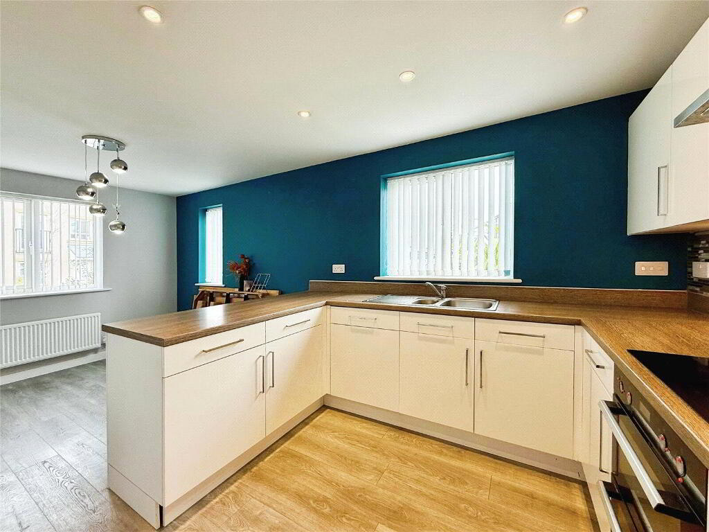 Designed for comfort and practicality, the home boasts an inviting, light-filled Kitchen / Diner, enhanced by 3 UPVC double glazed windows that create a bright and welcoming atmosphere. This fantastic family hub offers ample dining space and a well-equipped Kitchen with plentiful cupboards, generous work surfaces and built-in appliances, including an oven, hob with extractor, fridge / freezer and dishwasher. A handy Utility Room provides additional storage, a built-in washing machine, and access to the Ground Floor Cloakroom and rear garden.