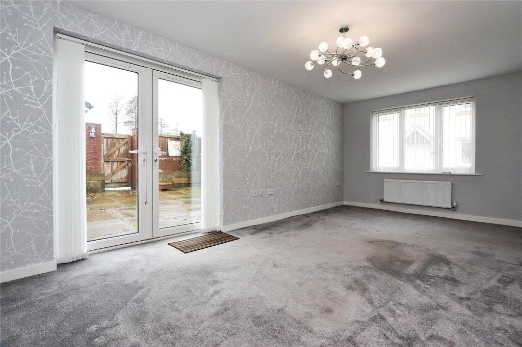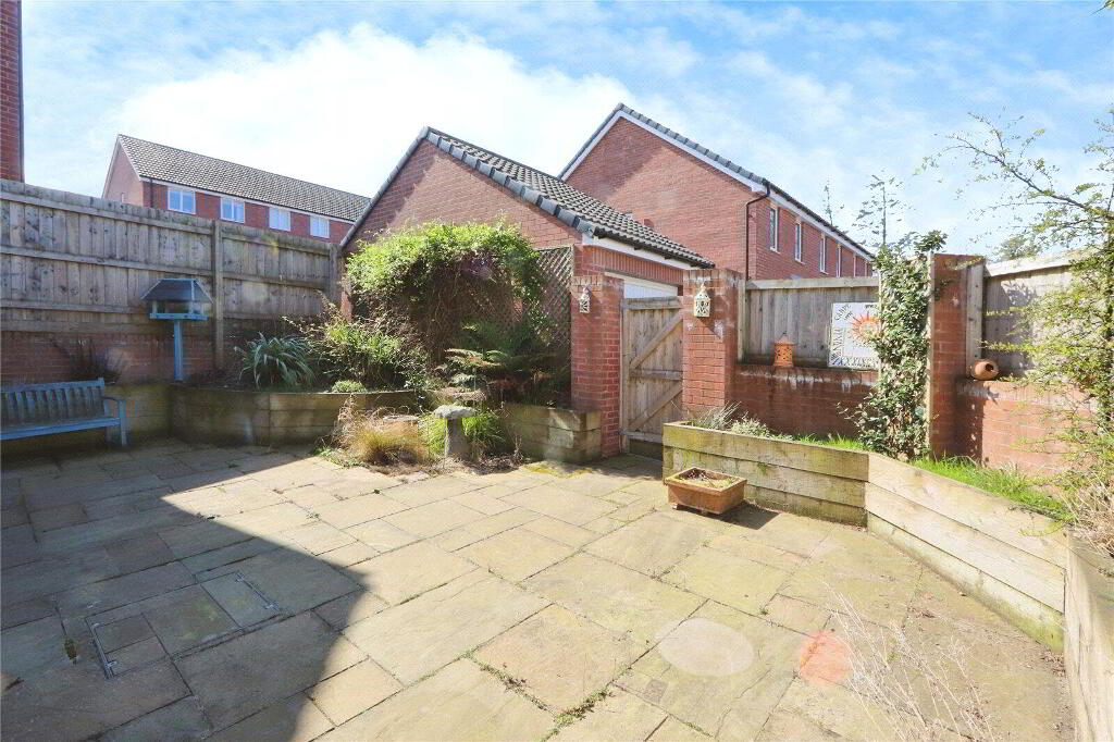 To the other side of the home, the spacious Living Room offers plenty of room to unwind, with French doors leading out to a fully enclosed, low-maintenance garden. Designed for relaxation and privacy, the outdoor space is primarily paved with raised railway sleeper flowerbeds, adding a decorative touch.