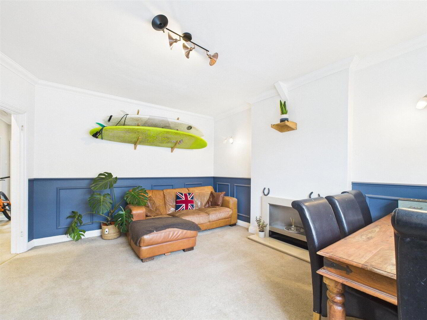 The modern kitchen has been recently refurbished to a high standard in a neutral style, while the adjoining living room provides a spacious area for both relaxing and entertaining, with ample room for a dining table.