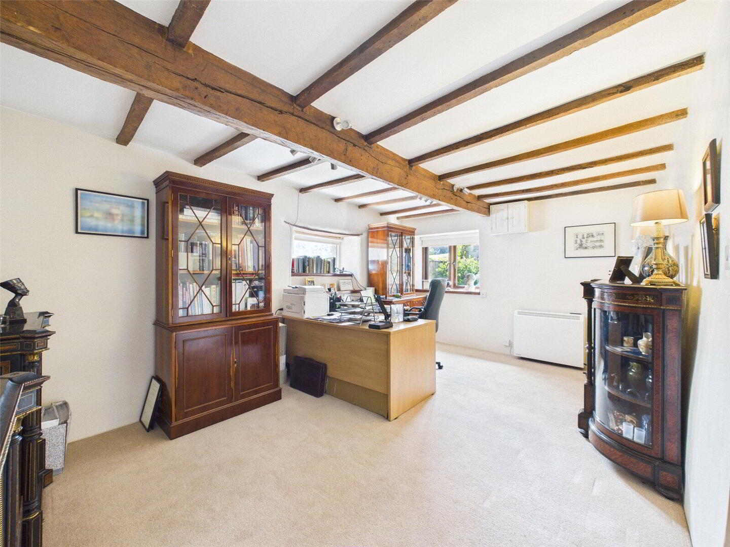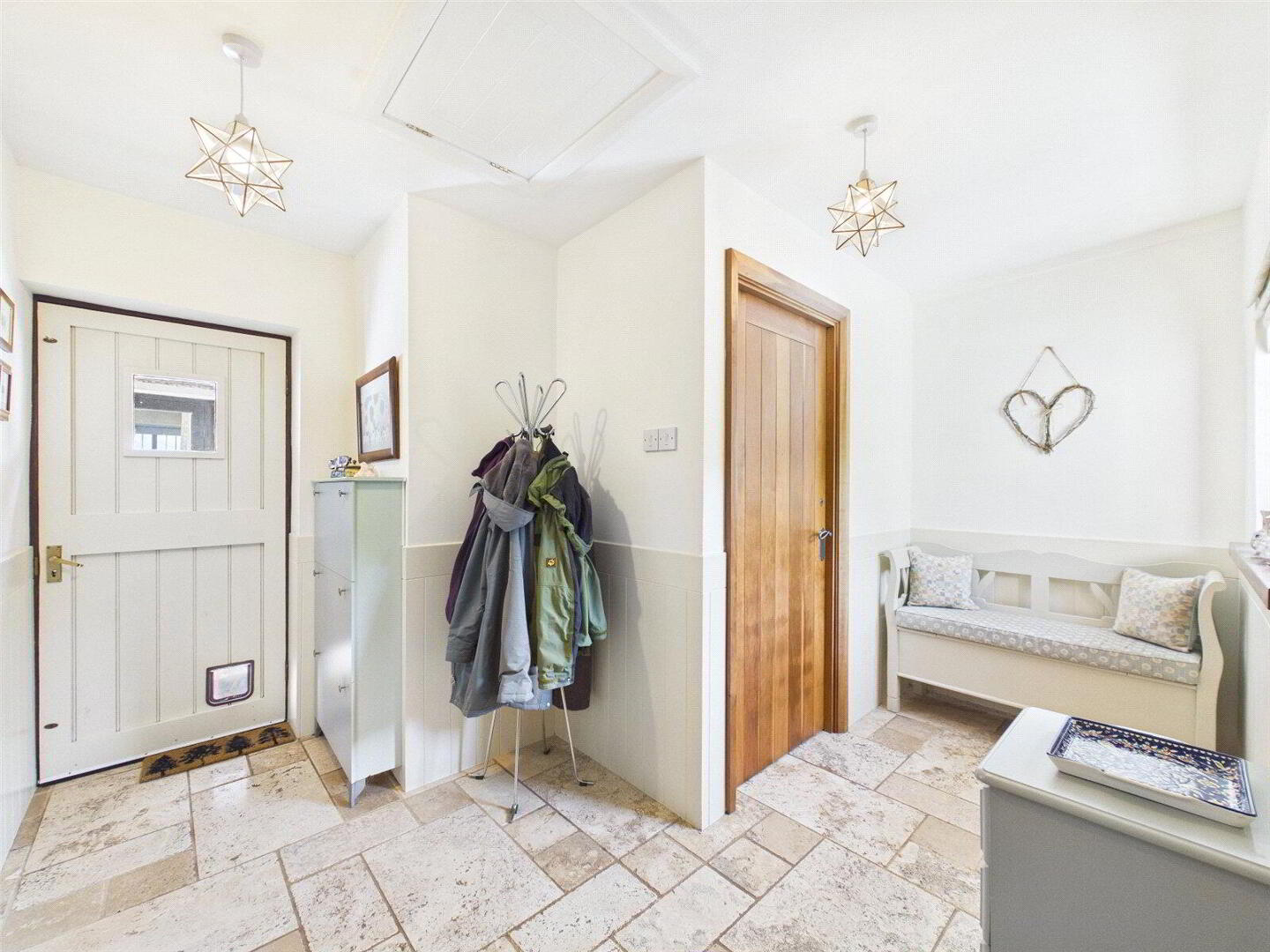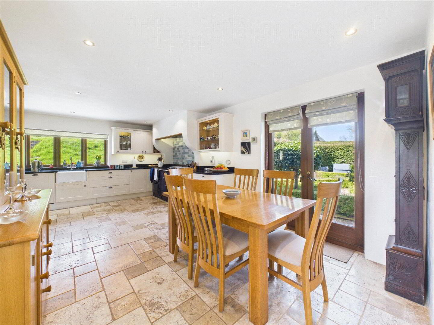 At the heart of the home lies a superb kitchen and breakfast room, designed very much with both everyday living and entertaining in mind. This sociable space combines traditional styling with practical features, including a classic Aga, quality cabinetry and ample workspace, all complemented by natural light and direct access to the gardens.