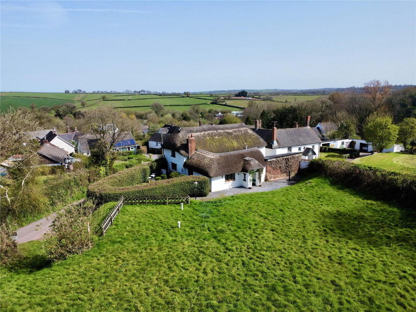 A truly captivating period barn conversion set within a sought-after Devon village, blending rich history with comfortable modern living. This beautifully maintained home showcases exposed timbers, striking cob elevations and a charming thatched roof, creating instant kerb appeal. Inside, generous and flexible accommodation flows effortlessly, centred around a welcoming kitchen and inviting living spaces perfect for both relaxing and entertaining. The gardens offer a private and peaceful escape, while additional outbuildings provide exciting potential for further use. With ample parking and a strong sense of community nearby, this is an outstanding opportunity to enjoy character, space and lifestyle in a quintessential village location.