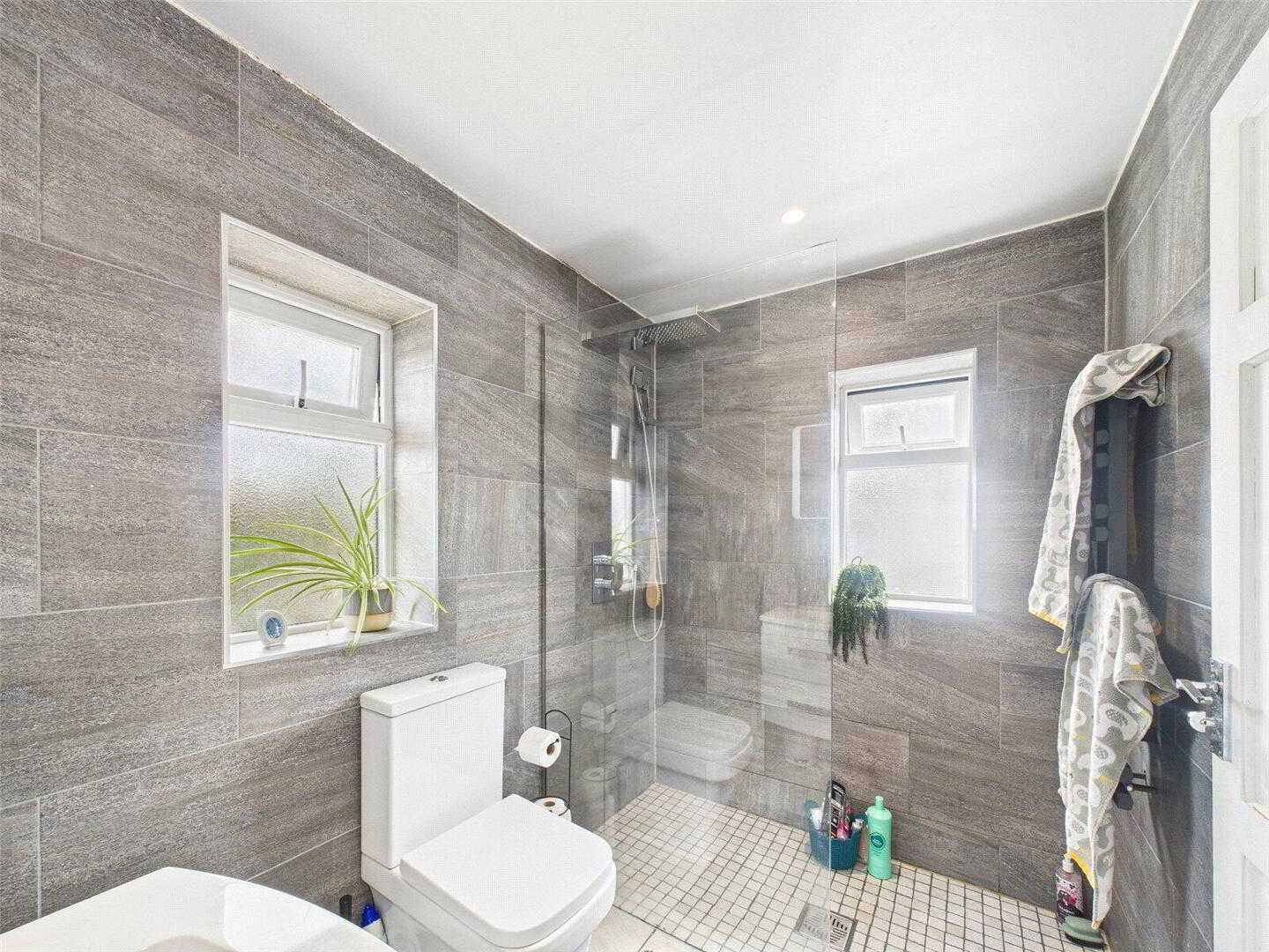 Upstairs, you’ll find two generously sized double bedrooms, both light and airy, alongside a well-proportioned single bedroom. Currently used as an office, this third room also makes a great child’s bedroom or guest room. The family bathroom has been finished to a high standard, boasting a modern design with a fitted light-up mirror—ideal for buyers looking for a move-in-ready home.