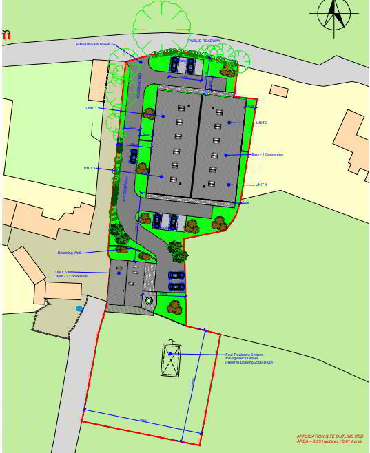 Tucked away in a particularly private position, this attractive south-facing barn has approval for conversion to a detached three-bedroom home. Enjoying its own independent entrance and driveway, it offers seclusion from the larger barn development and captures uninterrupted views across the valley. The approved scheme provides a generous one-acre garden, offering the perfect balance of space for family living, gardening, or even smallholding use. For those seeking further scope, there is also flexibility to extend the plot by an additional acre, creating even greater possibilities for outdoor lifestyle or landscaping projects.