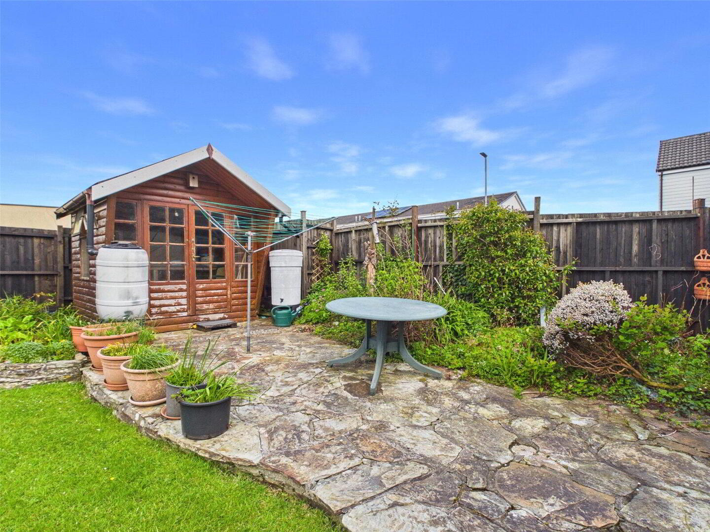 A rear-facing door leads directly into the well maintained garden. Offering a pleasant outdoor space to enjoy throughout the seasons.. The garage is also accessable via the garden.