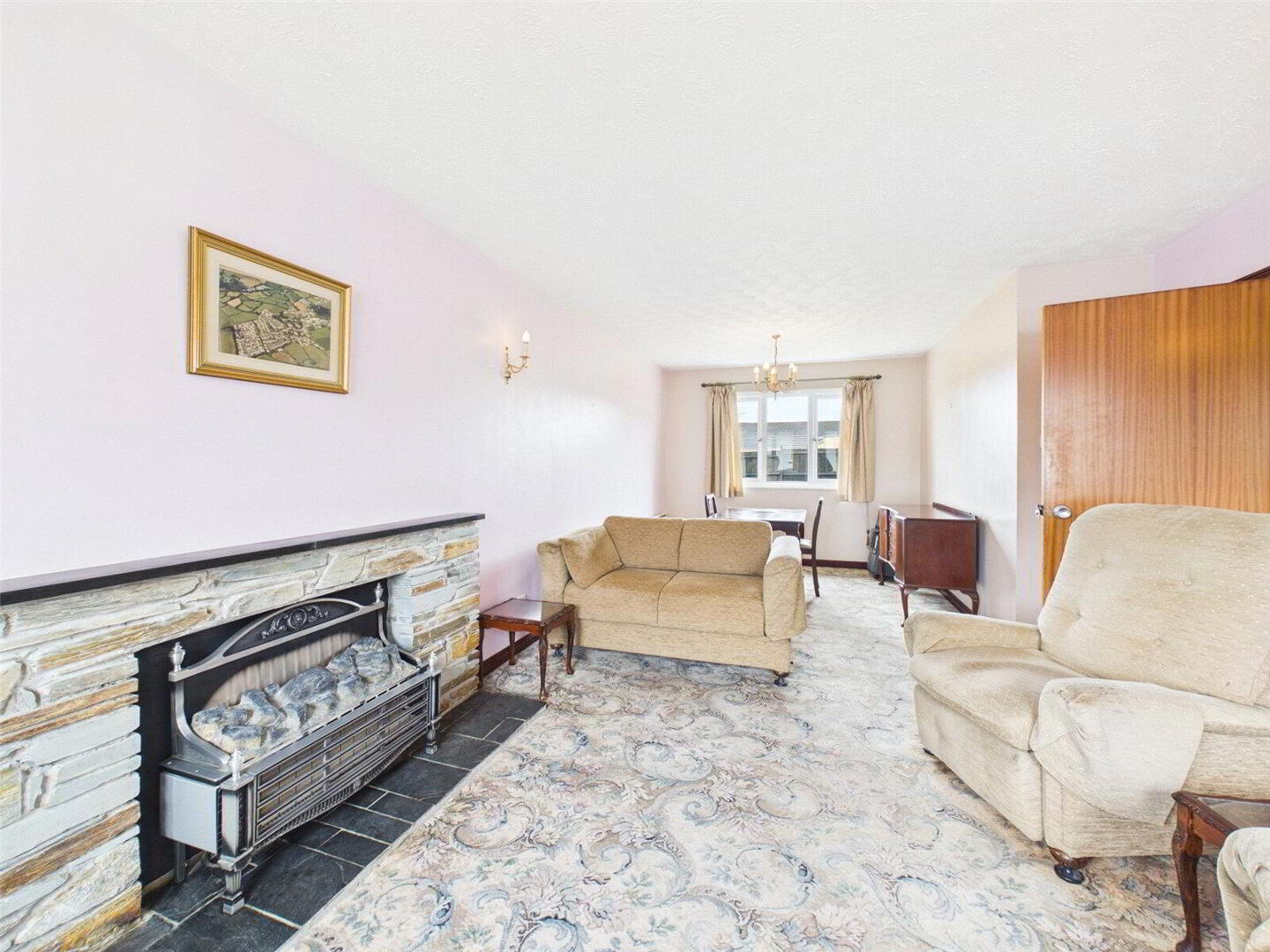 Inside, a bright and spacious hallway leads to three well-proportioned bedrooms, while the sitting room and dining area provide a sociable and inviting space, perfect for both everyday living and entertaining. The kitchen is well-equipped with a range of units, oven, grill, electric hob, sink and space for appliances, with a rear door opening directly onto the well-maintained garden. Ideal for enjoying outdoor living throughout the seasons. The garden also provides access to the garage.