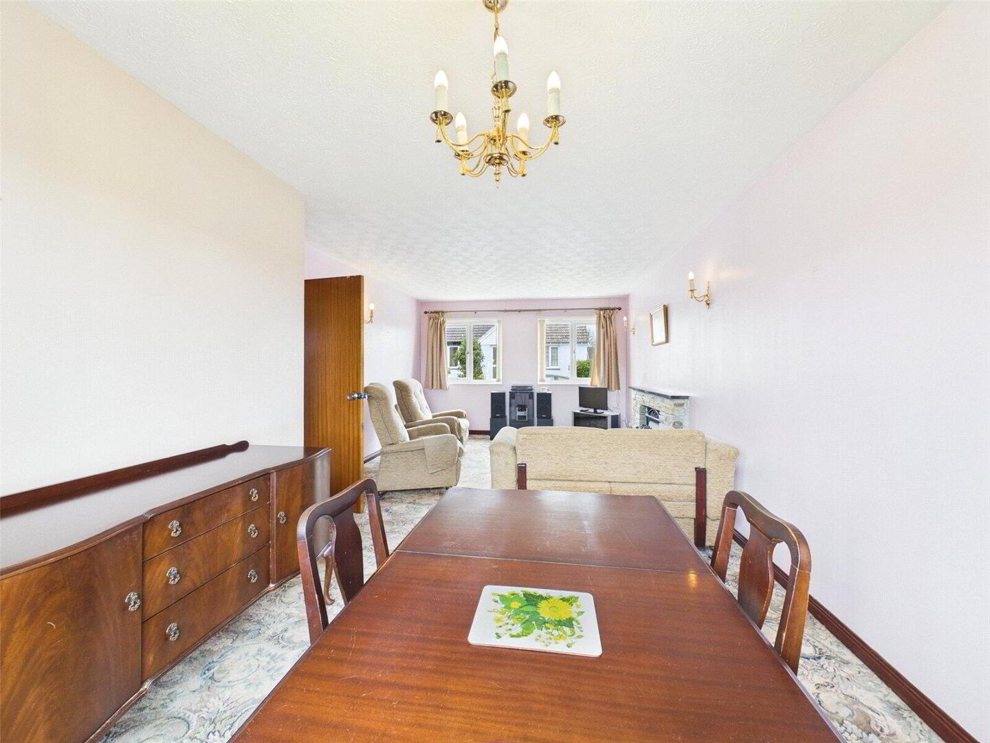 The sitting room and dining area form a wonderful sociable space. This inviting area is perfect for both everyday living and entertaining.