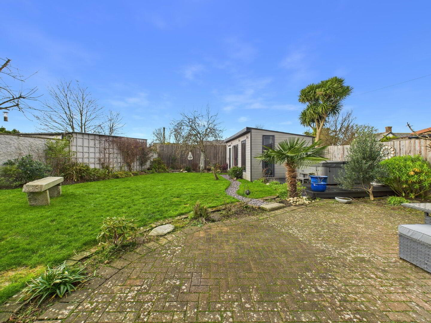 Externally, the property enjoys a well-maintained and private rear garden, predominantly laid to lawn and bordered by established planting, creating a pleasant and enclosed outdoor environment. The garden provides ample space for outdoor dining, children’s play, and entertaining, with direct access from the kitchen/dining room enhancing its usability throughout the warmer months. Positioned within the garden is a detached studio/hobbies room, offering a highly versatile space ideal for use as a home office, gym, studio, or games room, and adding further appeal to the property.