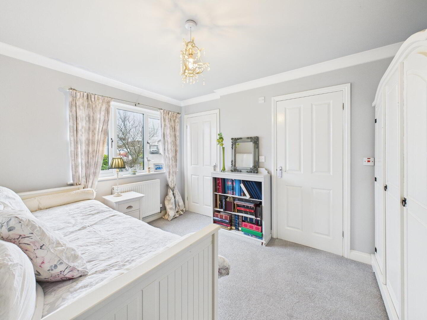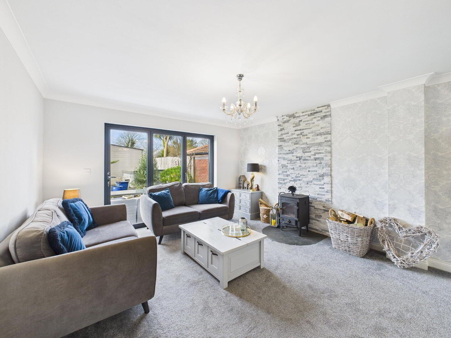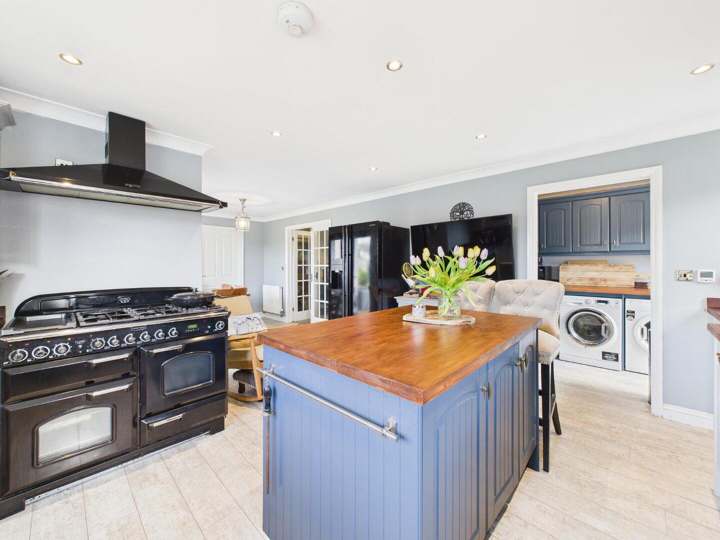 The property is approached via an entrance porch leading into a welcoming entrance hall with stairs rising to the first floor. The ground floor is centred around a superb open-plan kitchen/dining room, forming the heart of the home and providing an excellent space for everyday living and entertaining. The kitchen is well appointed with a central island and flows naturally into the dining area, which enjoys double doors opening directly onto the rear garden, creating a strong connection between the indoor and outdoor spaces. A separate generous living room offers a more formal reception space, ideal for relaxing or entertaining. Also on the ground floor is a useful utility room, WC, and a ground-floor bedroom with en-suite shower room, providing excellent flexibility for guests or multi-generational living.