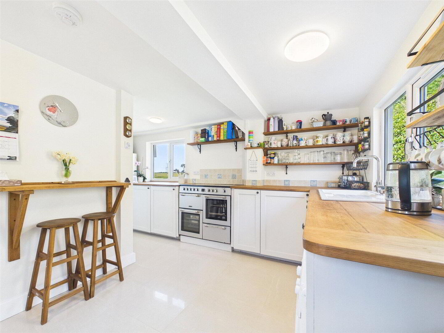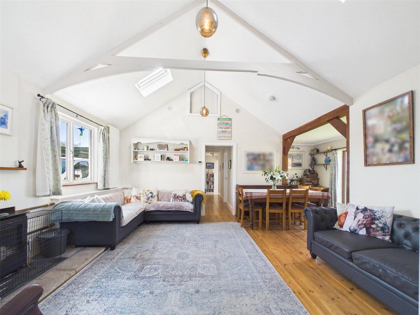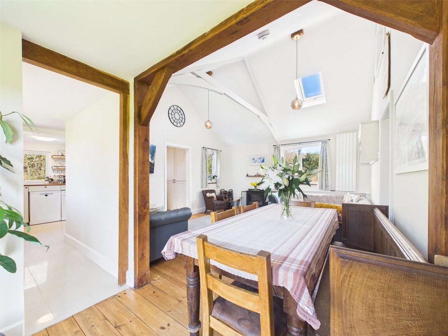 The property has undergone extensive renovation, blending its original features with modern finishes to offer both style and practicality. Internally, the accommodation is beautifully presented and well-proportioned throughout. At the heart of the home is a light and airy kitchen, designed with both everyday living and entertaining in mind, which flows seamlessly through to a stunning living room. This impressive space features a vaulted ceiling and a woodburning stove, creating a wonderful sense of space and a cosy focal point.