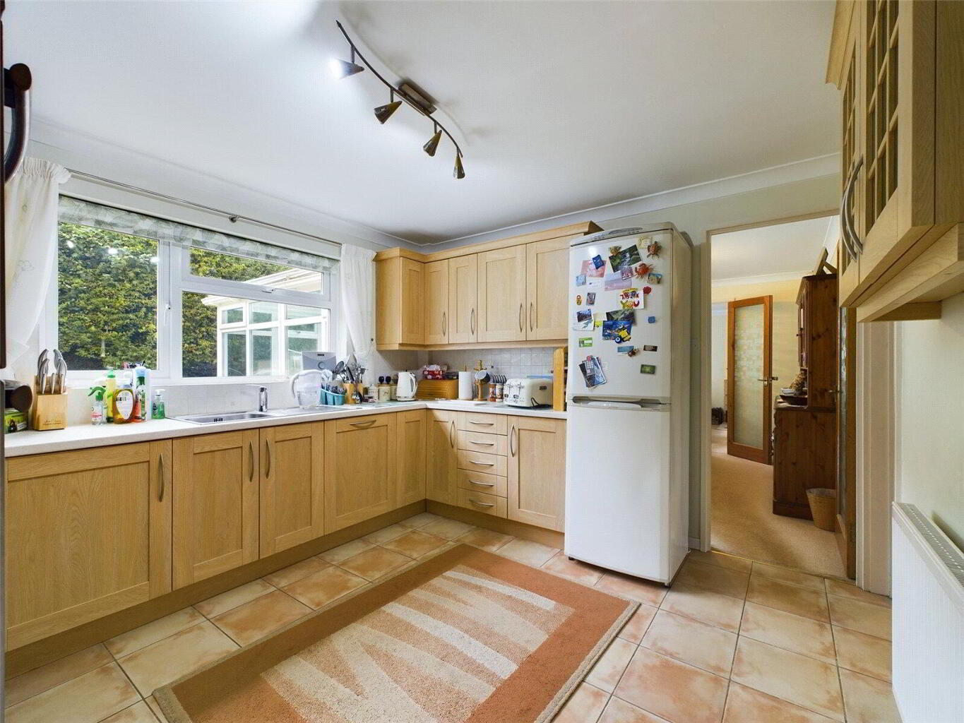 Step inside and you’ll be greeted by a welcoming entrance porch that opens into a bright and airy hallway. The ground floor boasts a generous dual-aspect lounge with a feature living flame gas fire, perfect for cozy evenings in. The adjoining dining room provides a lovely space for family meals and opens into the light-filled conservatory, which offers views of the rear garden and is perfect for year-round enjoyment. The modern, fully-fitted kitchen comes complete with integrated appliances, while a separate utility room adds practicality with additional storage and laundry space. A convenient cloakroom completes the ground floor.