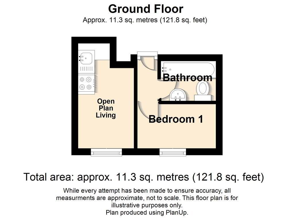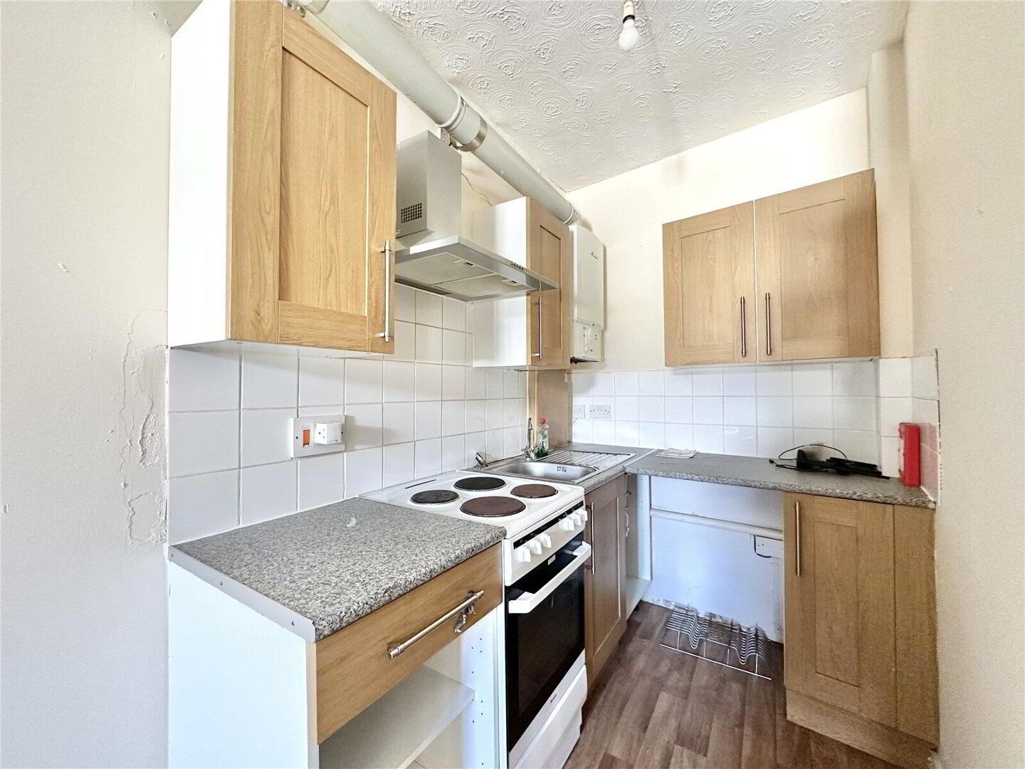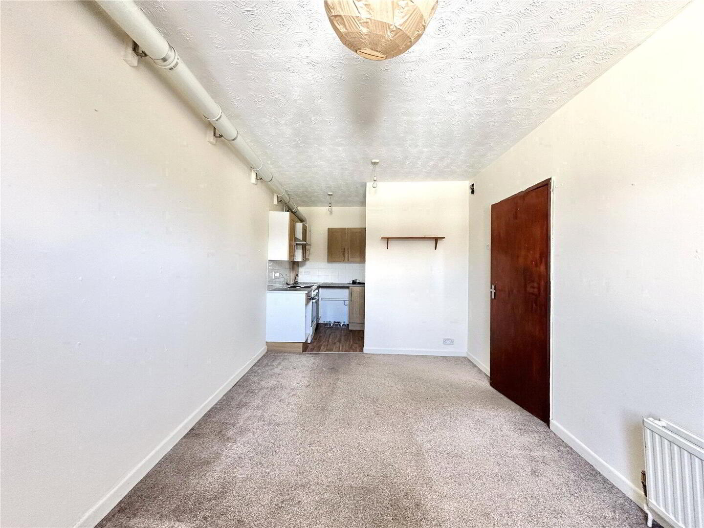 The property features a good-sized double bedroom overlooking the front aspect, creating a comfortable and peaceful space to unwind. The open-plan kitchen and lounge area benefits from large windows overlooking Well Street, flooding the room with natural light and providing a pleasant outlook.