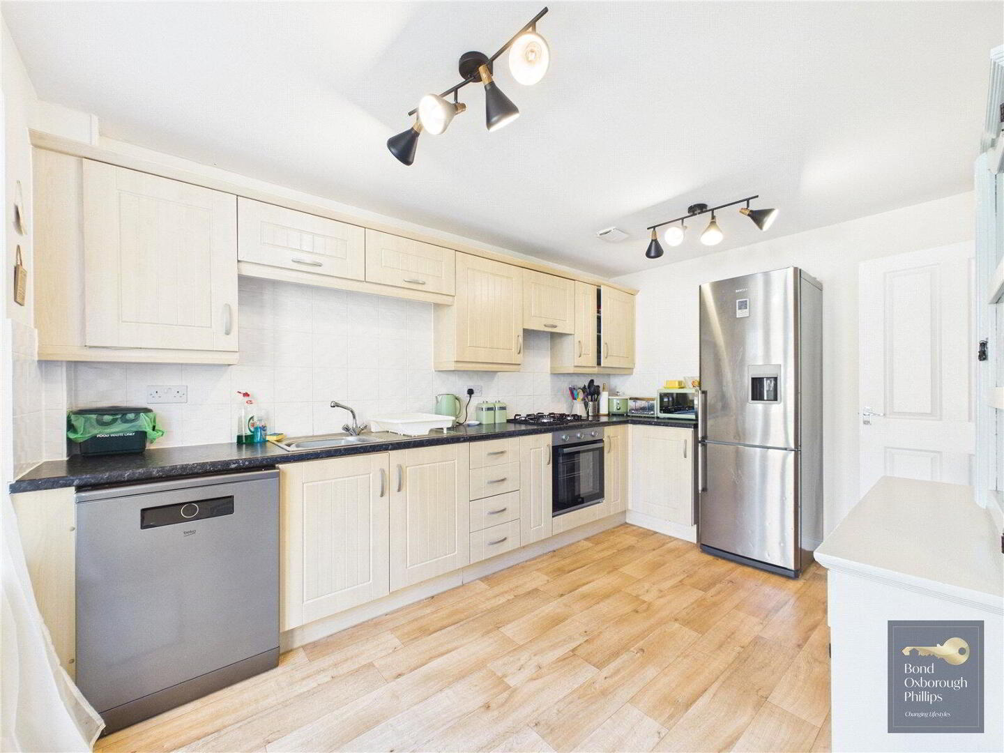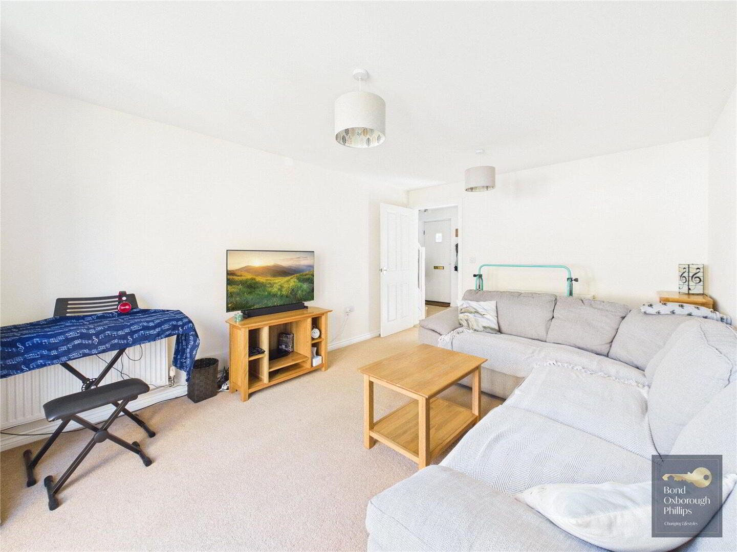 The property is bright and airy throughout, offering generous proportions that make it ideal for families or anyone seeking a spacious and flexible home environment. To the front, there is off-road parking along with access to an en-bloc garage, providing additional convenience and storage.