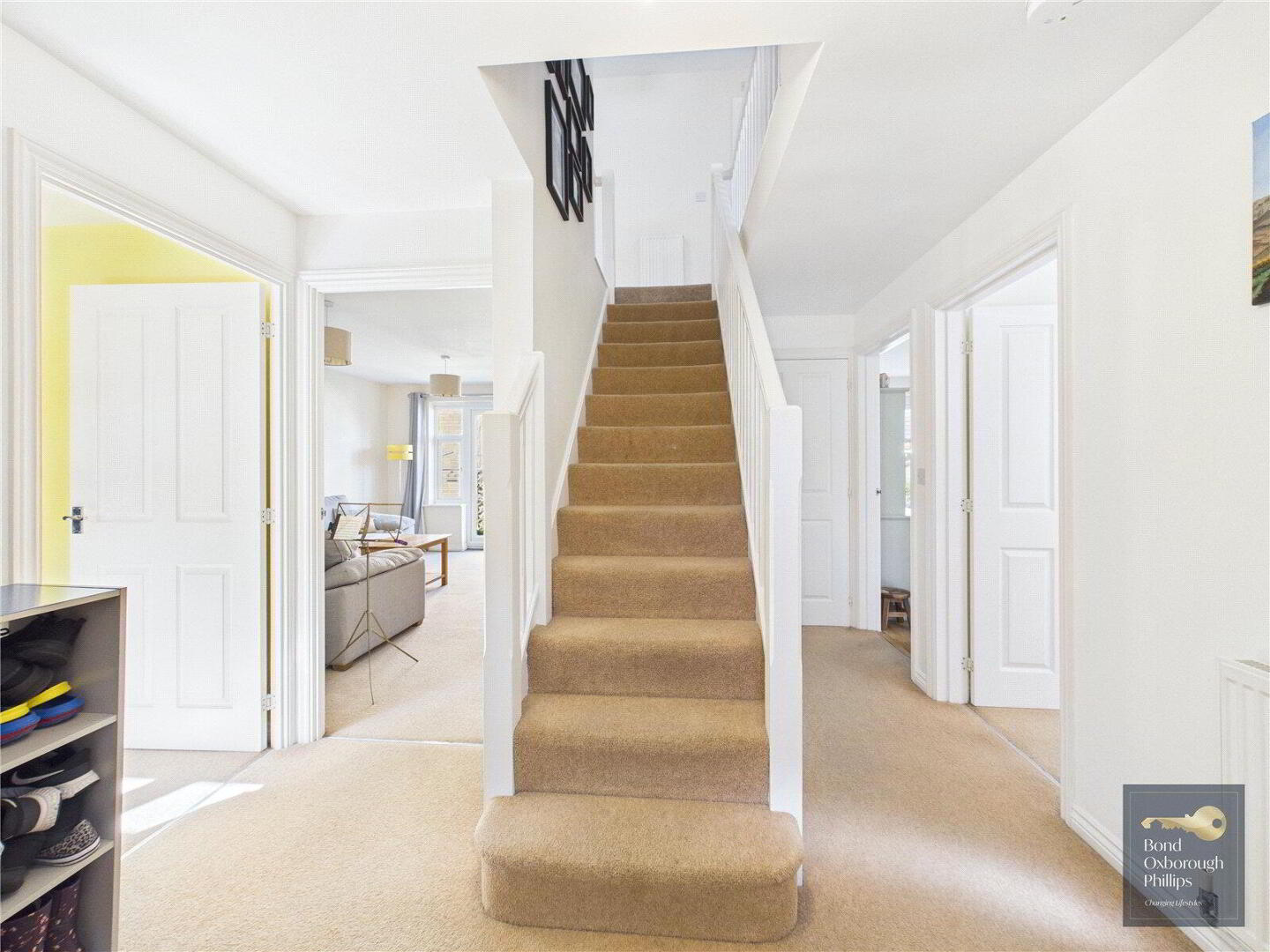 Upon entering the property, a welcoming entrance hall provides access to all principal reception rooms, with a staircase directly ahead rising to the first floor. To the left, a versatile room offers flexibility as a home office, hobbies room, or even a ground floor bedroom if required. To the rear of the property, a generously sized living room is filled with natural light and features double doors opening out onto the garden, creating a seamless connection between indoor and outdoor living. The home further benefits from a separate dining room, ideal for both everyday family meals and entertaining.