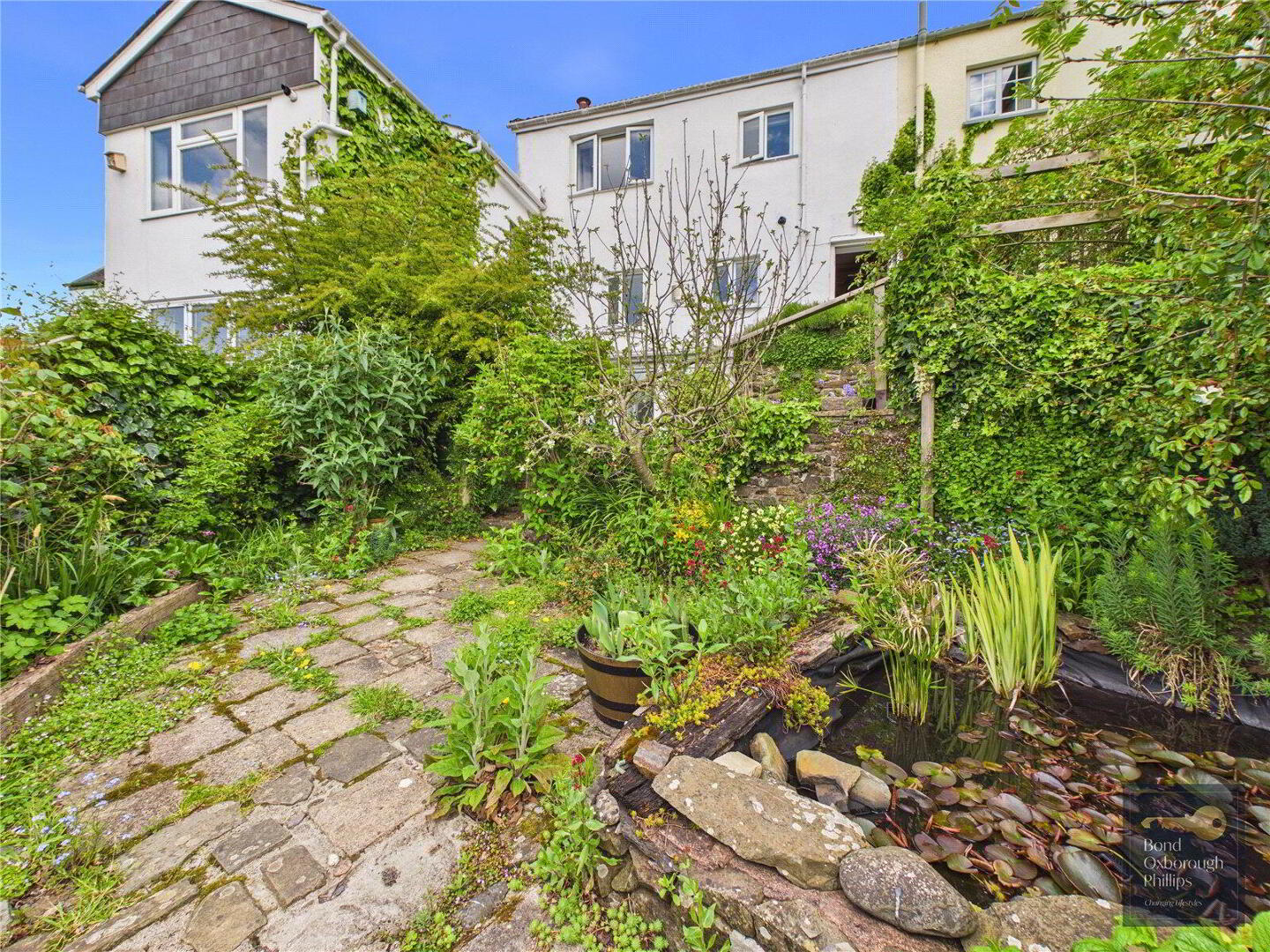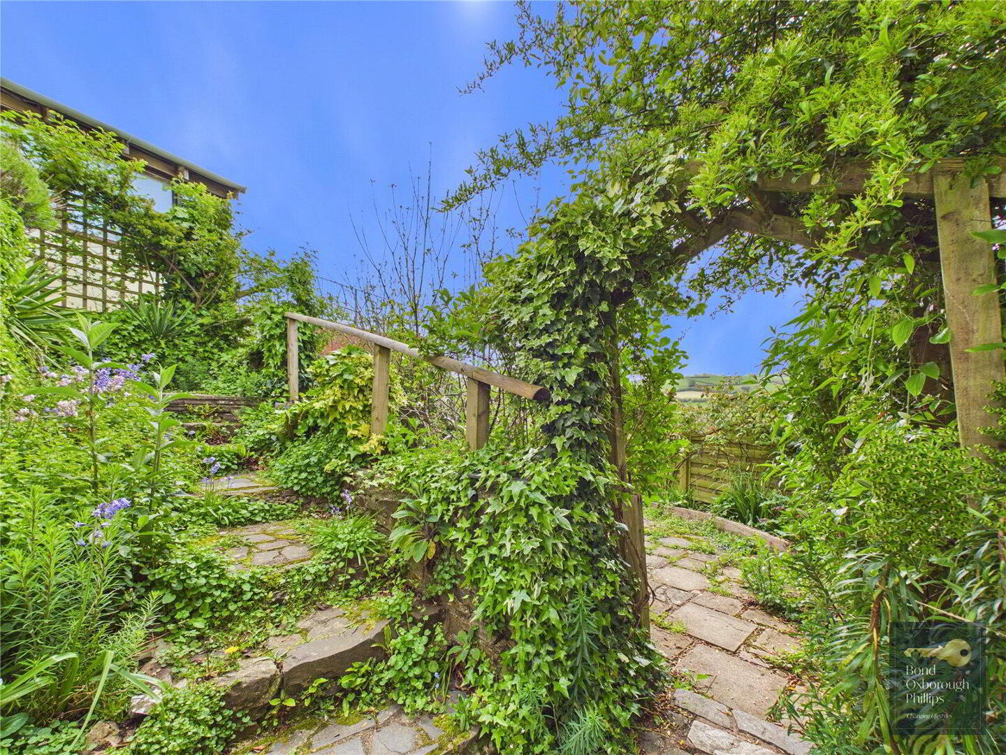 Externally, the property continues to impress. Leading out from the kitchen is a lovely paved seating area perfect for al fresco dining while taking in the spectacular surroundings. Steps lead down to a further garden level, where another paved terrace and a charming pond create an additional peaceful outdoor retreat.