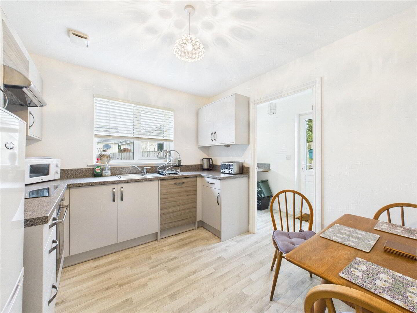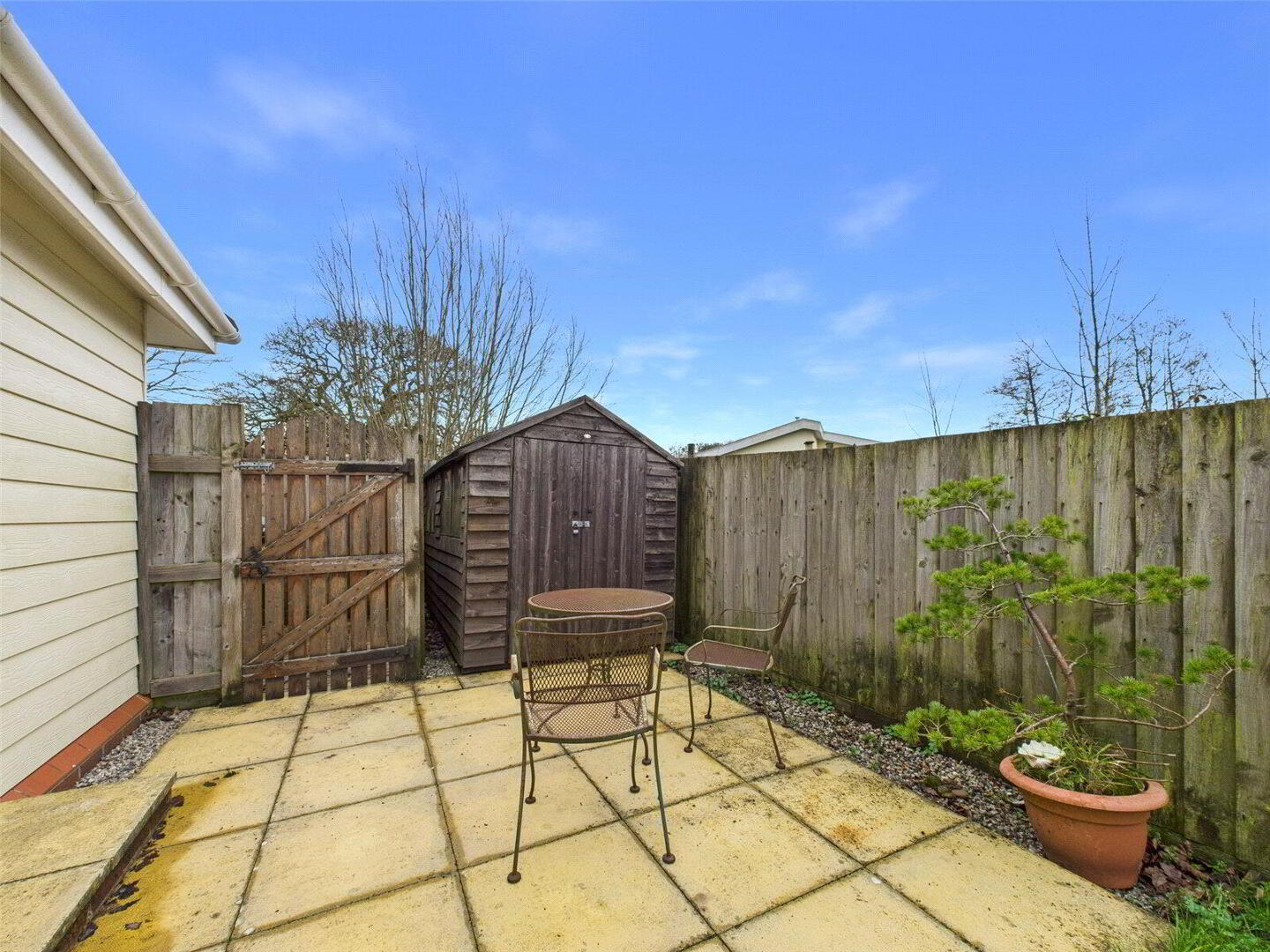 Externally, the property is approached via a brick-paved driveway providing off-road parking, with gated side access leading to the enclosed rear garden. Designed for ease of maintenance, the garden enjoys a favourable sunny aspect and incorporates a patio area, level lawn and a timber garden shed.