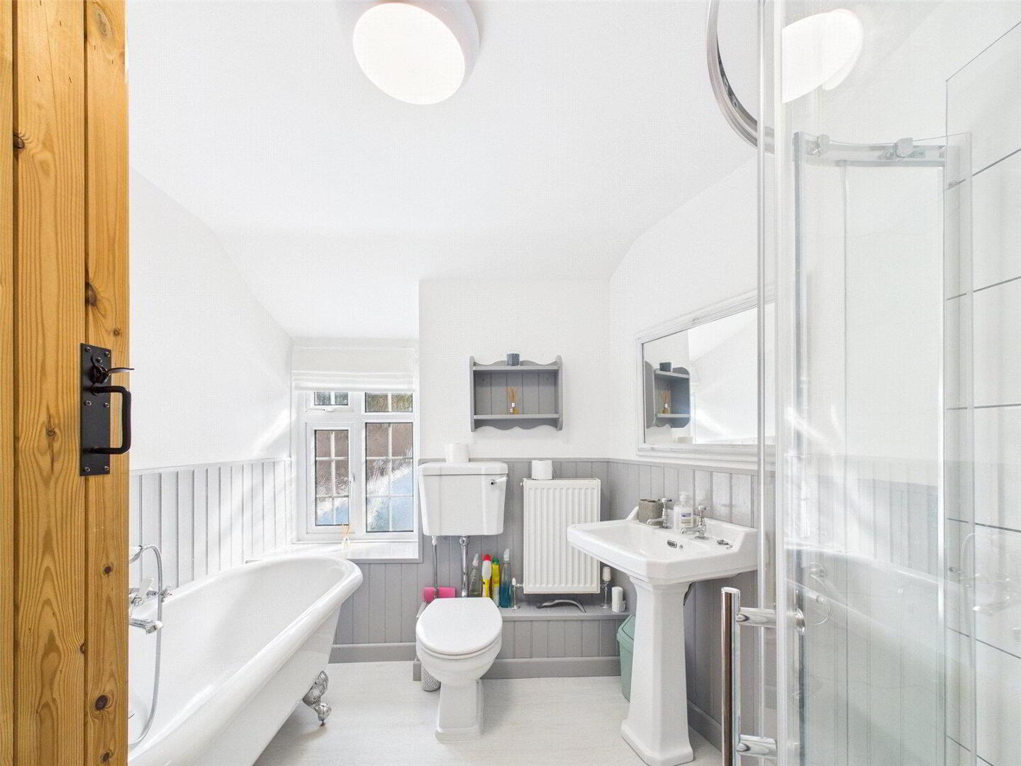 Upstairs, you’ll find two generous double bedrooms and a well-sized bathroom complete with both a bath and shower. Downstairs, there is also a single bedroom with its own en-suite/WC. Throughout, the property feels bright and airy, with lovely views over the river and surrounding woodland.