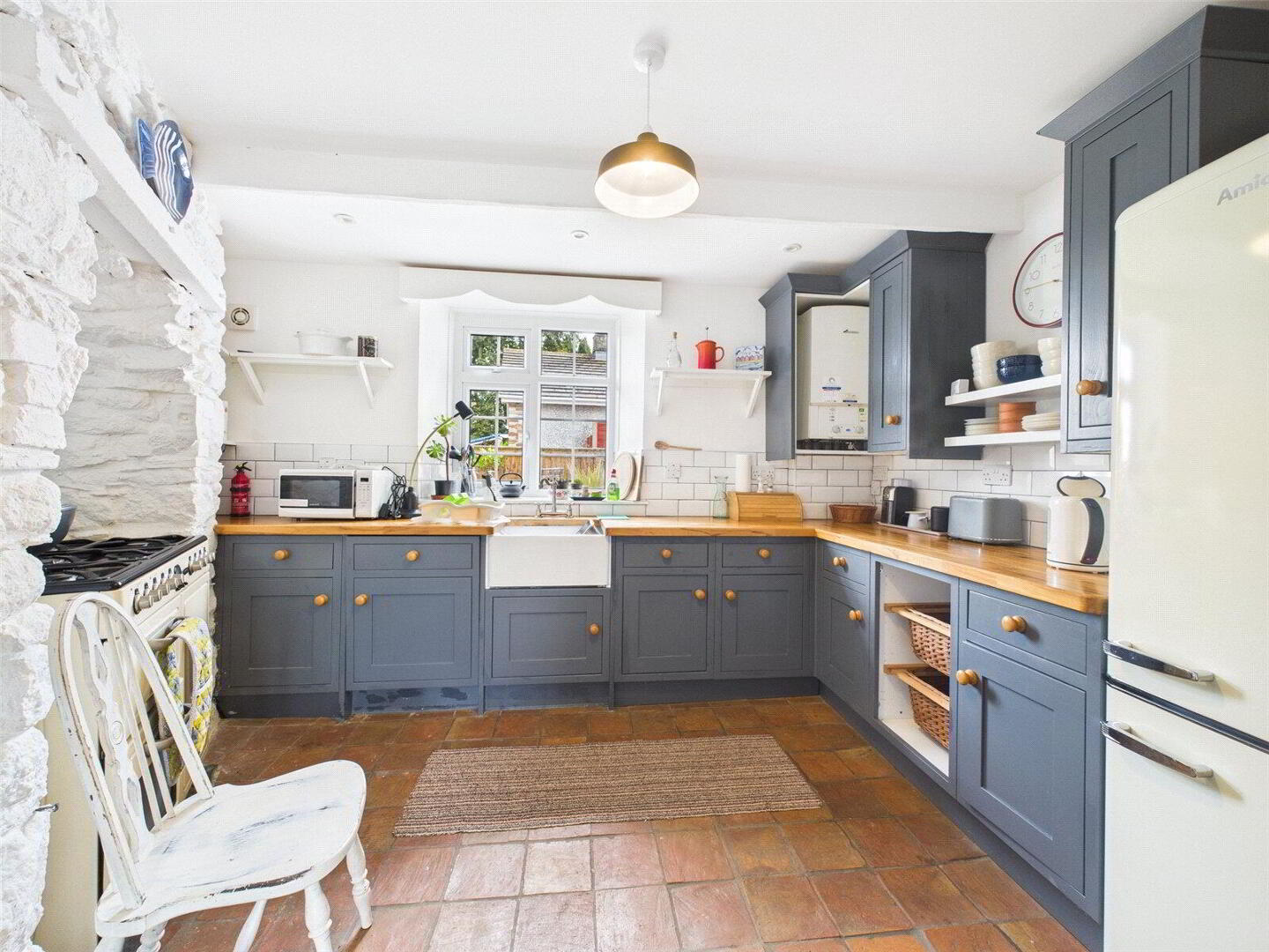 The kitchen is bright and airy, with ample storage space and an adjoining utility room for added convenience. It combines practicality with character, making it a perfect hub for the home.