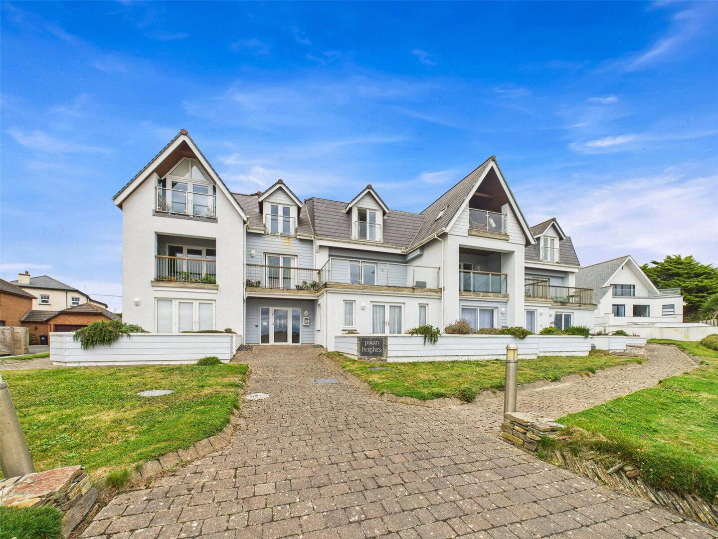 Set in an elevated position with sweeping views across the rugged North Cornish coastline, this beautifully presented second floor apartment at Piran Heights captures the very essence of coastal living. Access is gained via an external staircase leading to the top floor, with the added convenience of a lift serving the building. Once inside, the property opens into a private entrance lobby and welcoming hall. Two double bedrooms are found here, each benefitting from their own en-suite rooms, creating the ideal setup for family, guests, or visiting friends.
