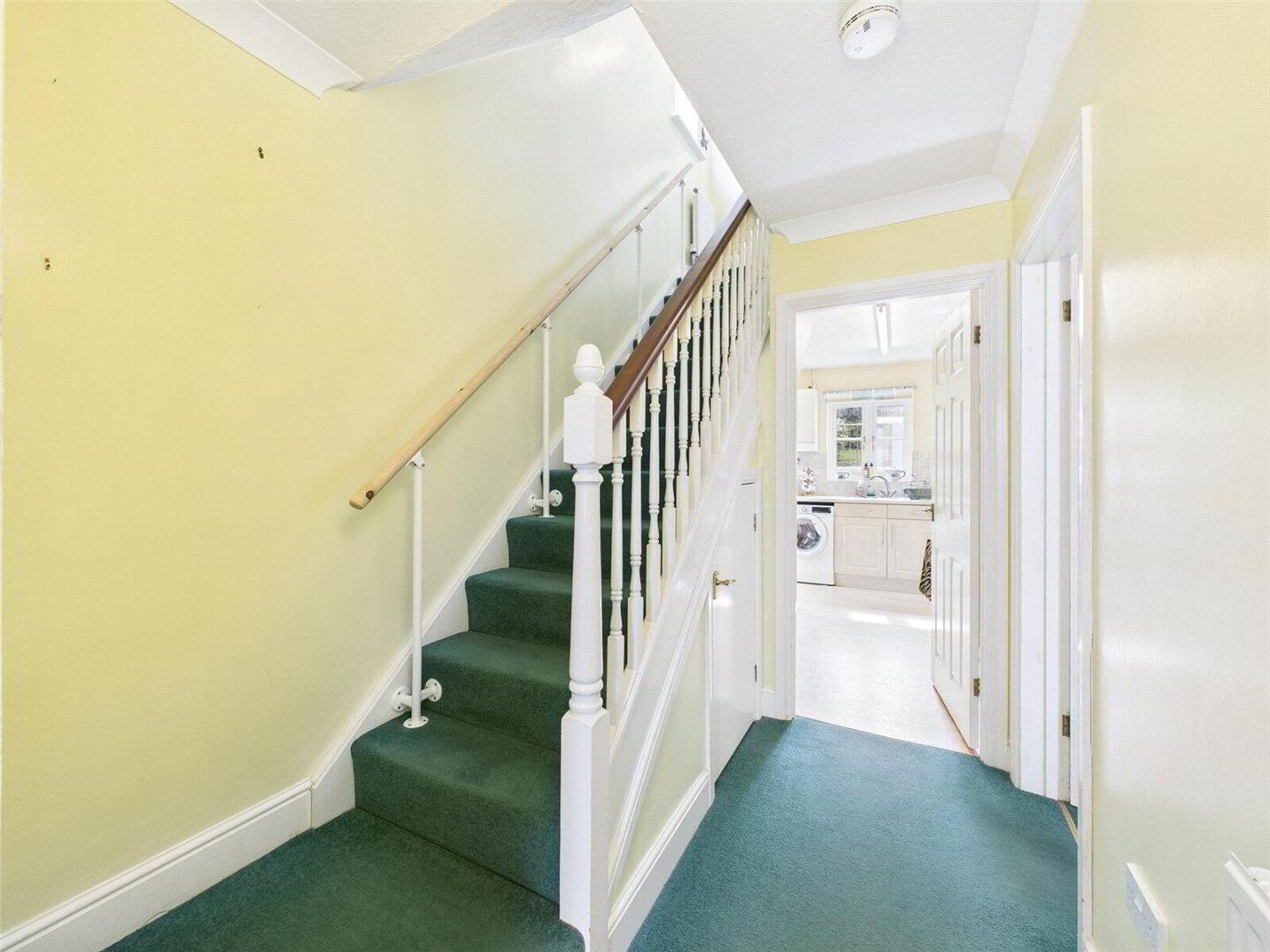 Returning to the hallway, the separate kitchen sits to the rear of the property and enjoys views of the garden. Fitted with ample worktop space, cabinetry, and appliances, the kitchen also provides direct access to the side of the property via a single door – ideal for day-to-day convenience.