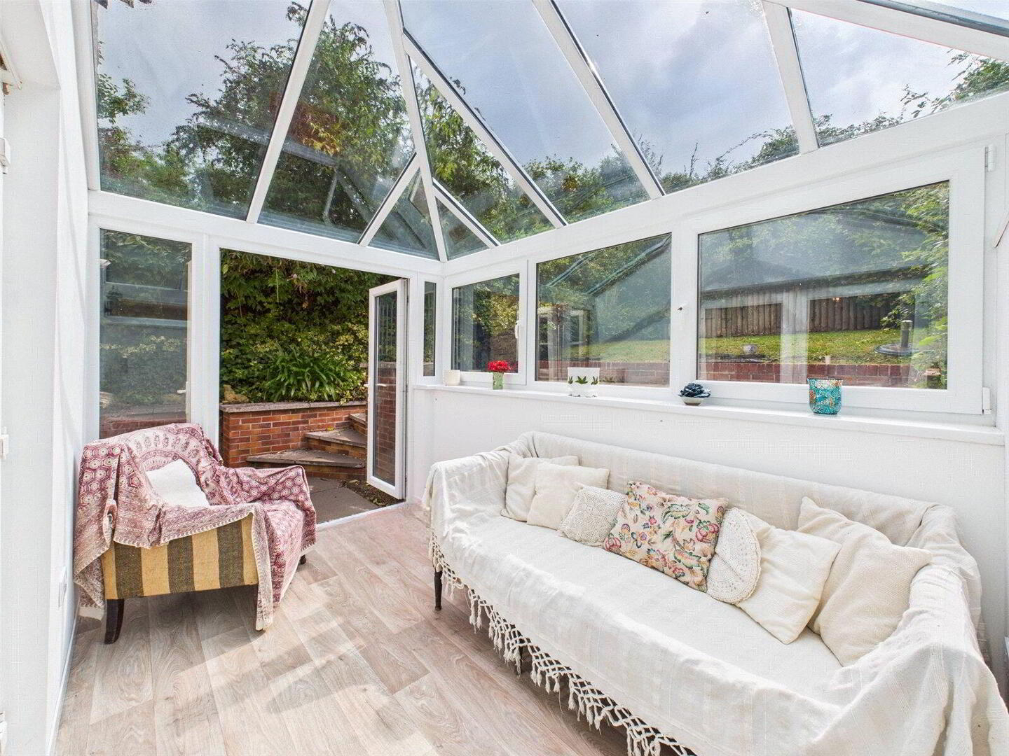 This already versatile space is further enhanced by a double-glazed sunroom extension to the rear. A peaceful and bright room, perfect for reading, relaxing, or simply enjoying views of the garden in comfort. French doors open out to the patio, making outdoor dining or hosting gatherings a breeze during the warmer months.